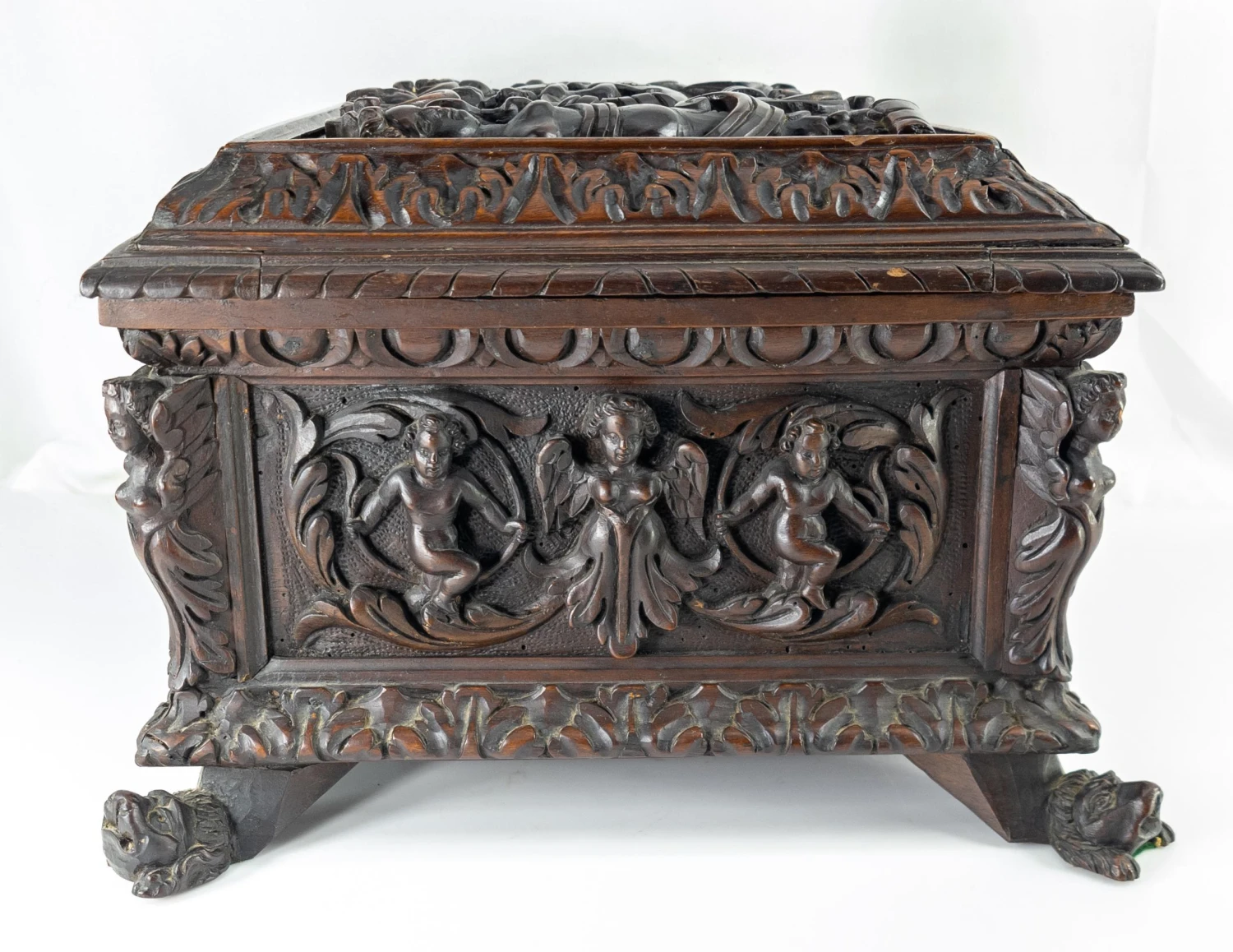 We are selling this great Baroque carved Italian chest. This miniature Cassone casket has deep carving on all sides with …