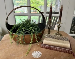 A 1920s hand-crafted, hand painted and Decorated Tripod Firkin or Sewing Bucket with handle.