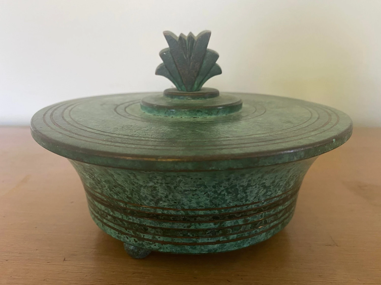 A beautiful Art Deco period patinated bronze lidded box by Carl Sorensen. An uncommon and hard to find form by …