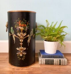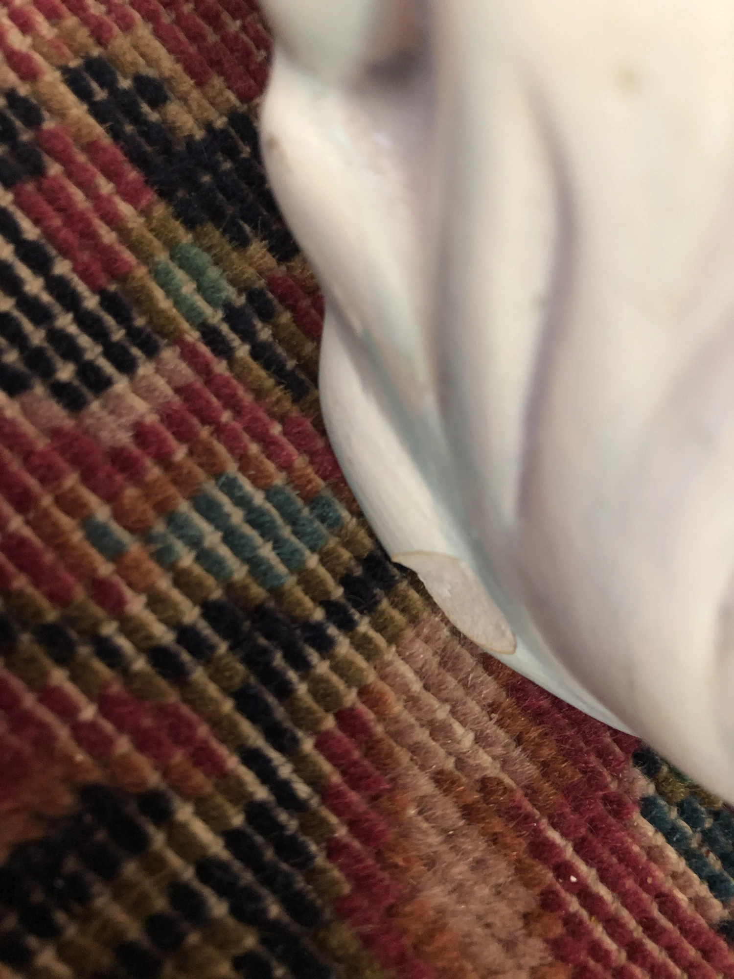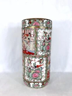 This white glazed ceramic vessel in in excellent vintage condition and features scenes, in relief, of romantic partners, horse imagery, …
