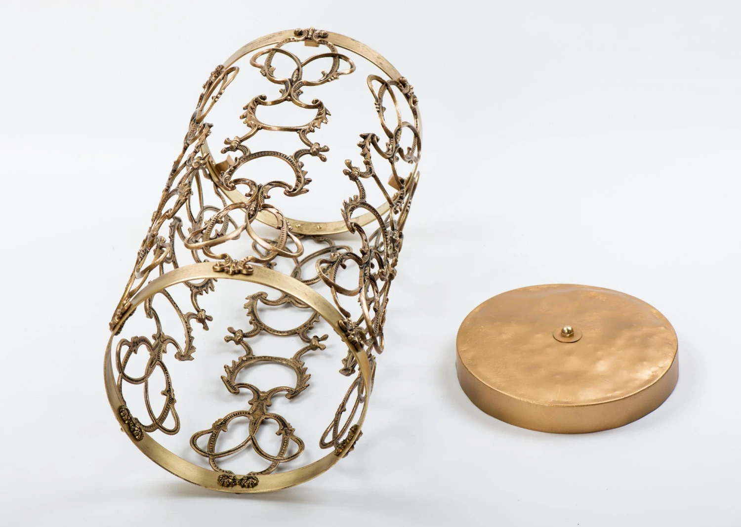 In excellent vintage condition. The bottom tray was painted gold at some point, it has dents (see photos).