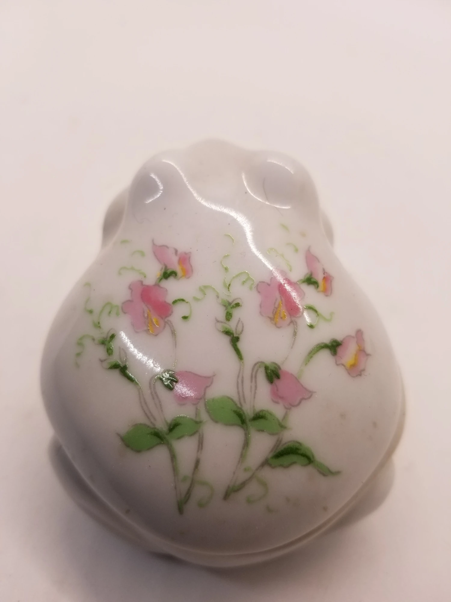 The Counterpoint Dew Frog Trinket Box Ceramic Hand Decorated With Sweetpeas handpainted