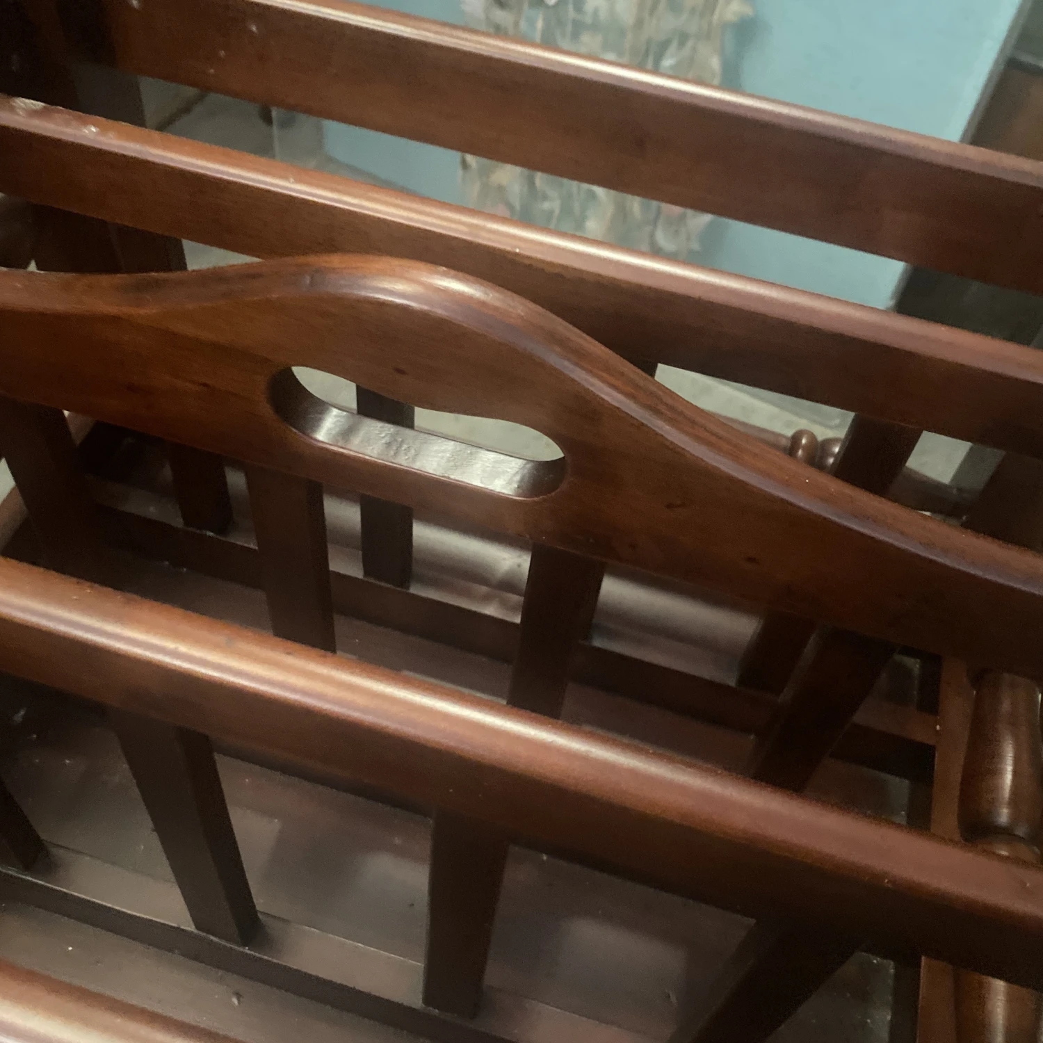 This is a beautiful wooden antique magazine rack. Perfect for the interior designer or the enthusiast!