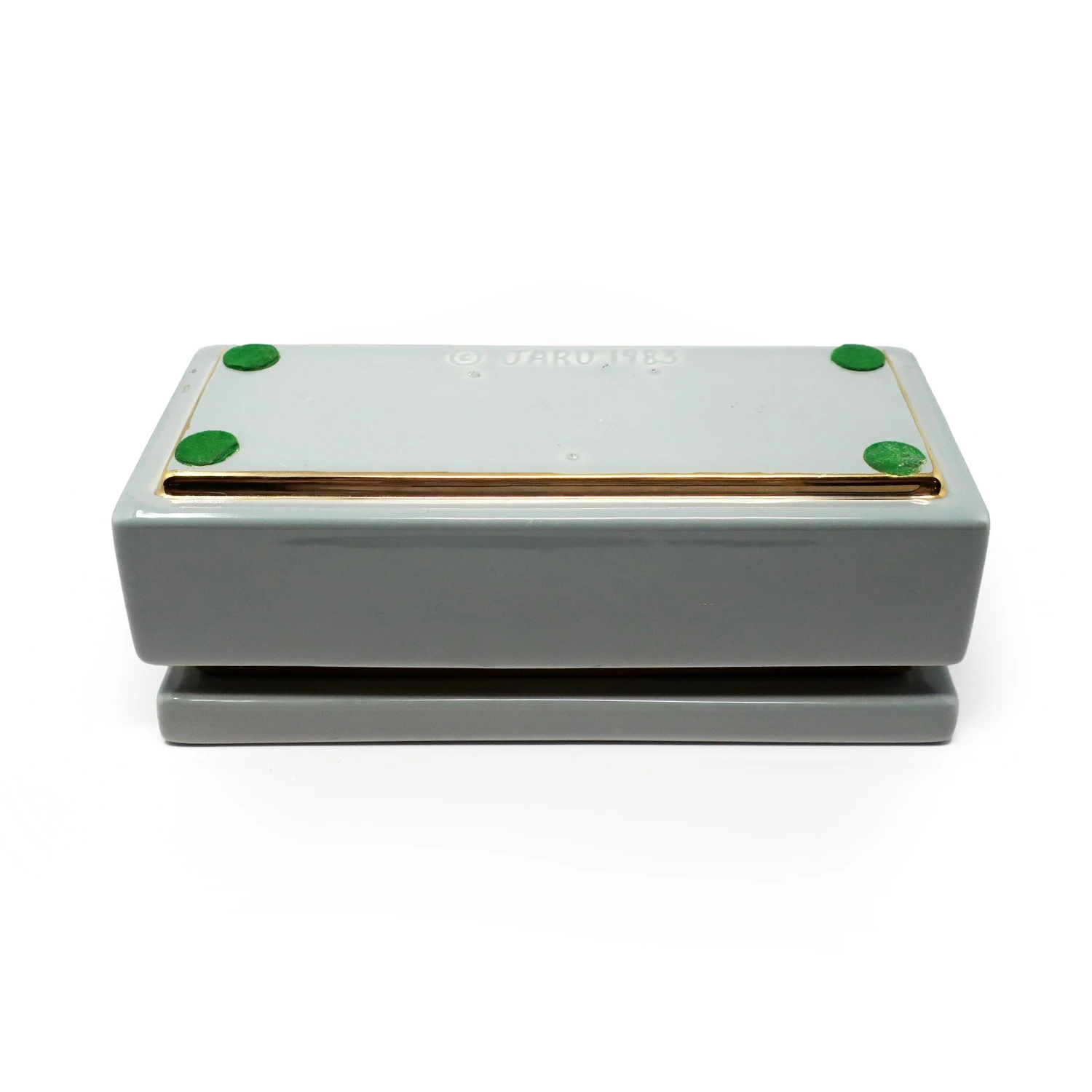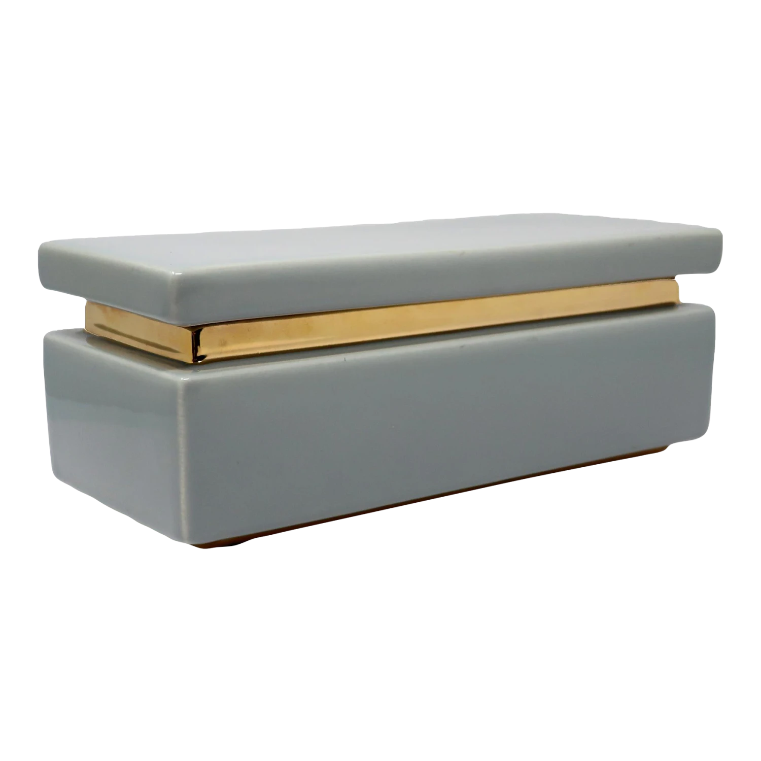A stunning decorative ceramic vase with gray glaze on the base and top and metallic gold stripes by Jaru of …