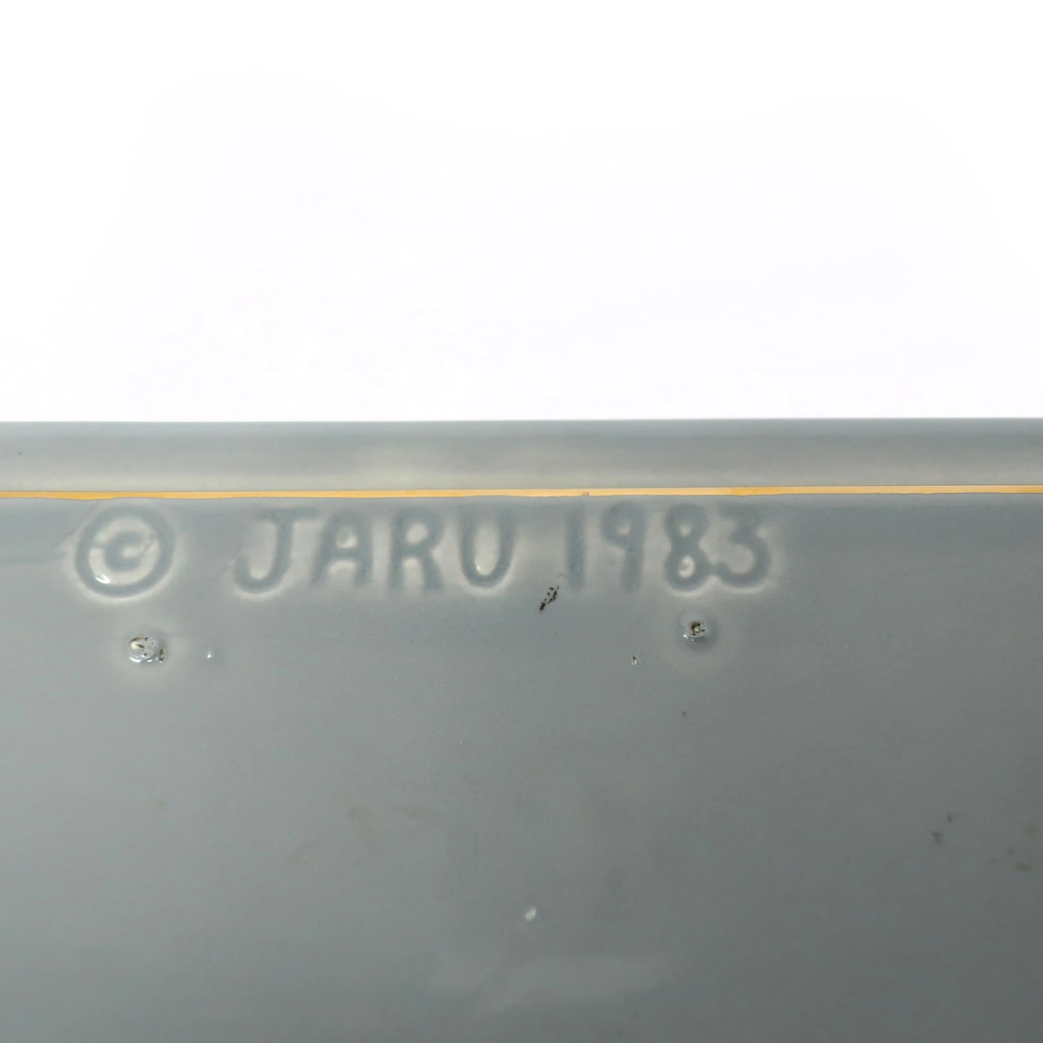 A stunning decorative ceramic vase with gray glaze on the base and top and metallic gold stripes by Jaru of California. In good vintage condition and signed on underside “JARU 1983”.