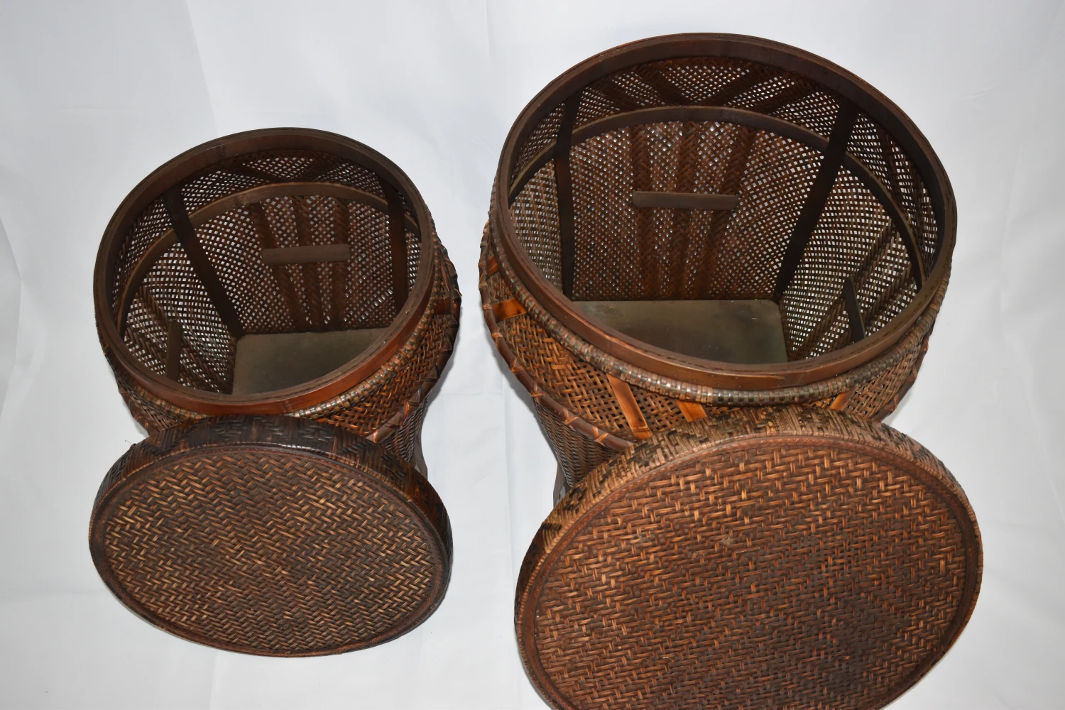 These baskets were brought back from the Philippines in the 1980’s by a gentleman who use to travel for business but later sold them when he retired and decided to downsize. They are in wonderful condition with very light wear around the bottom as pictured.