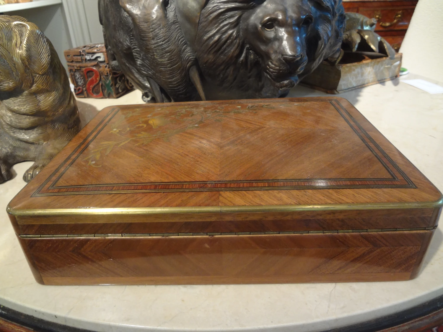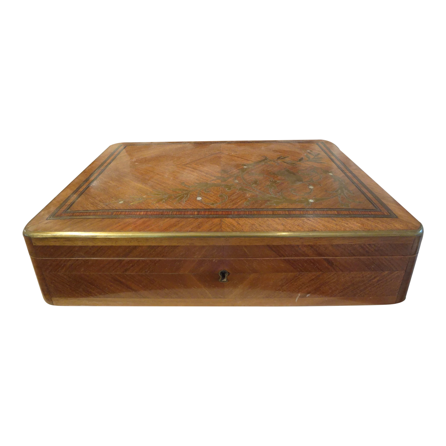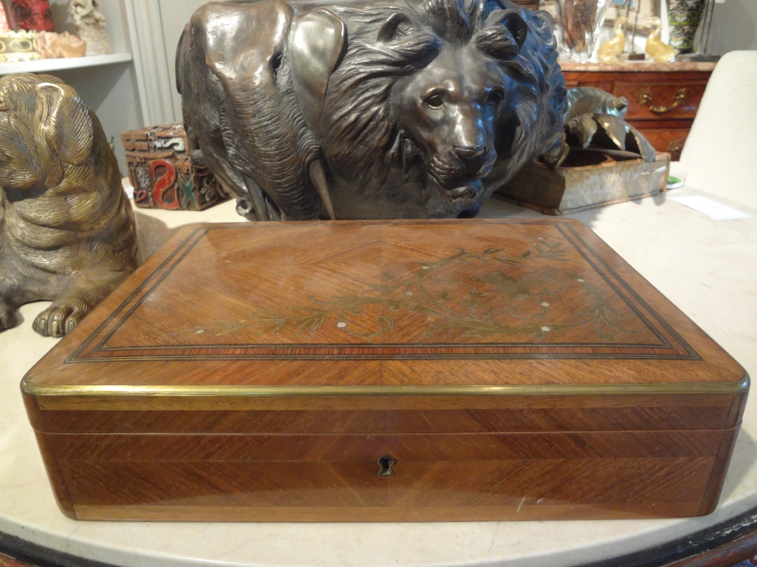 19th Century Brass Inlaid Walnut Box. This Stunning Decorative Box Or Jewelry Box Has Beautiful Brass Inlay And Trim With …
