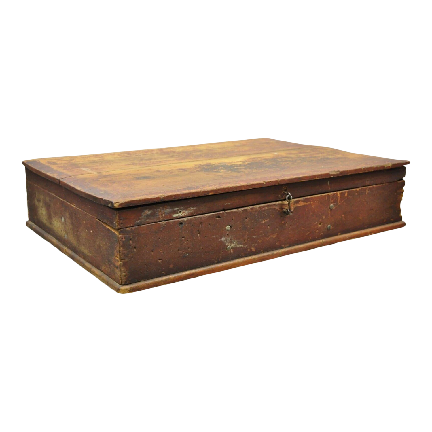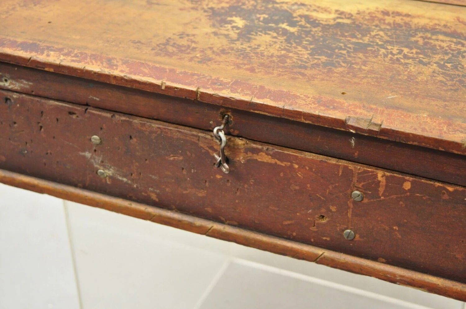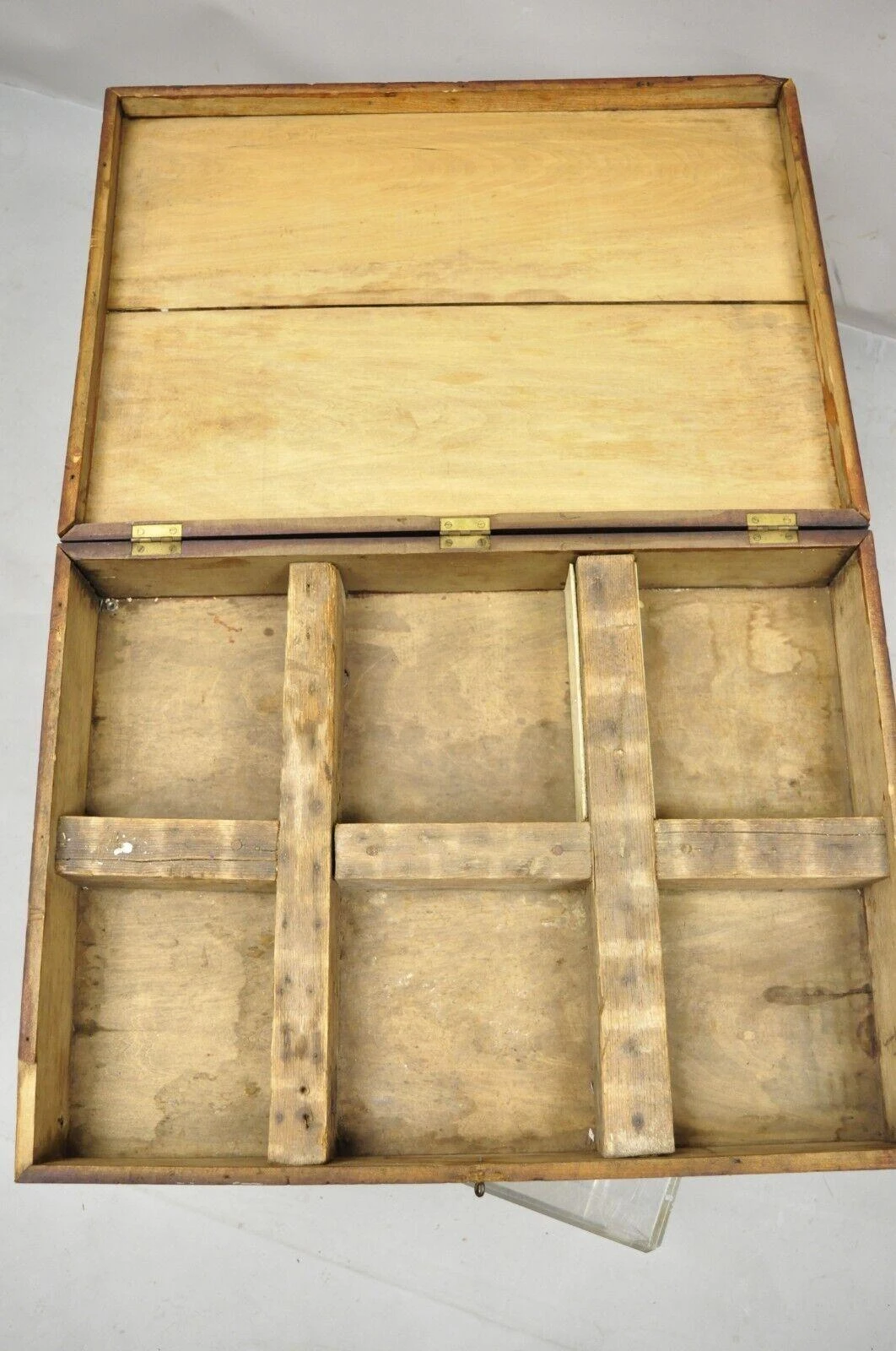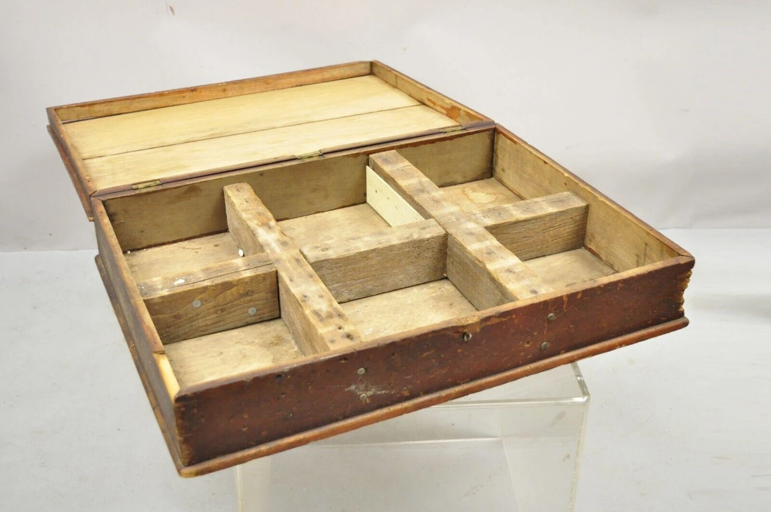 Antique 19th C American Primitive Wooden Distressed Paint Storage Tool Work Box. Item features a solid wood construction, distressed finish, …