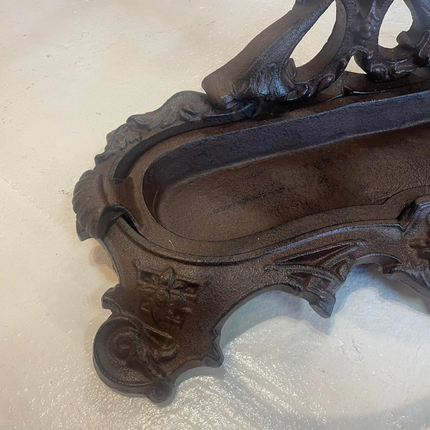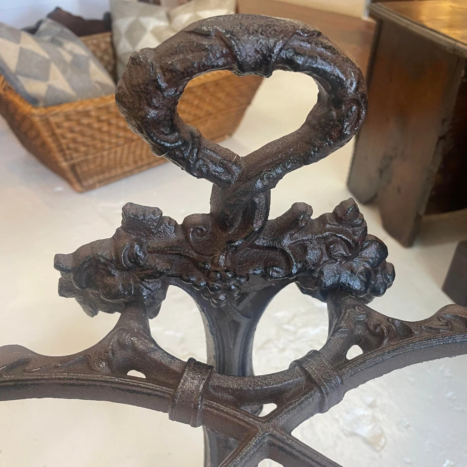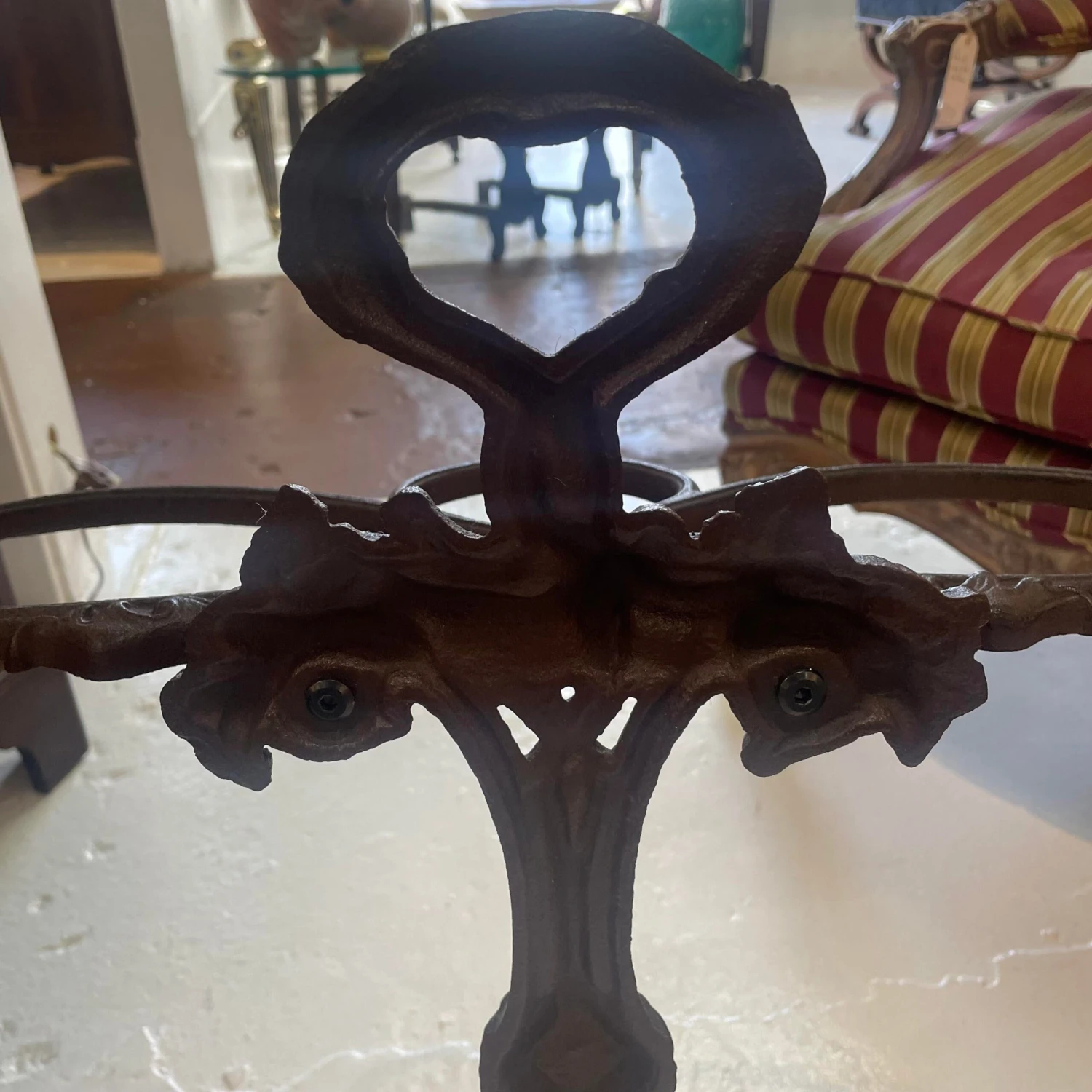 Attractively cast in heavy iron. Solid and robust suitable for indoor or outdoor use