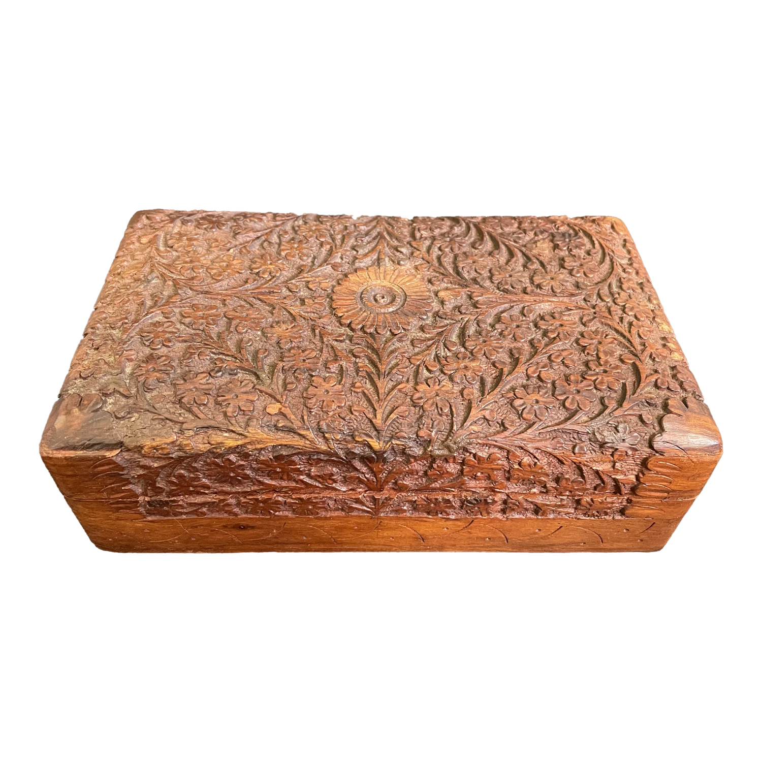 Antique Kashmir Walnut Wood Carving Trinket – Jewelry Box. Brass hinges. Velvet lined. Circa 1890s – 1920s. Very nice condition, …