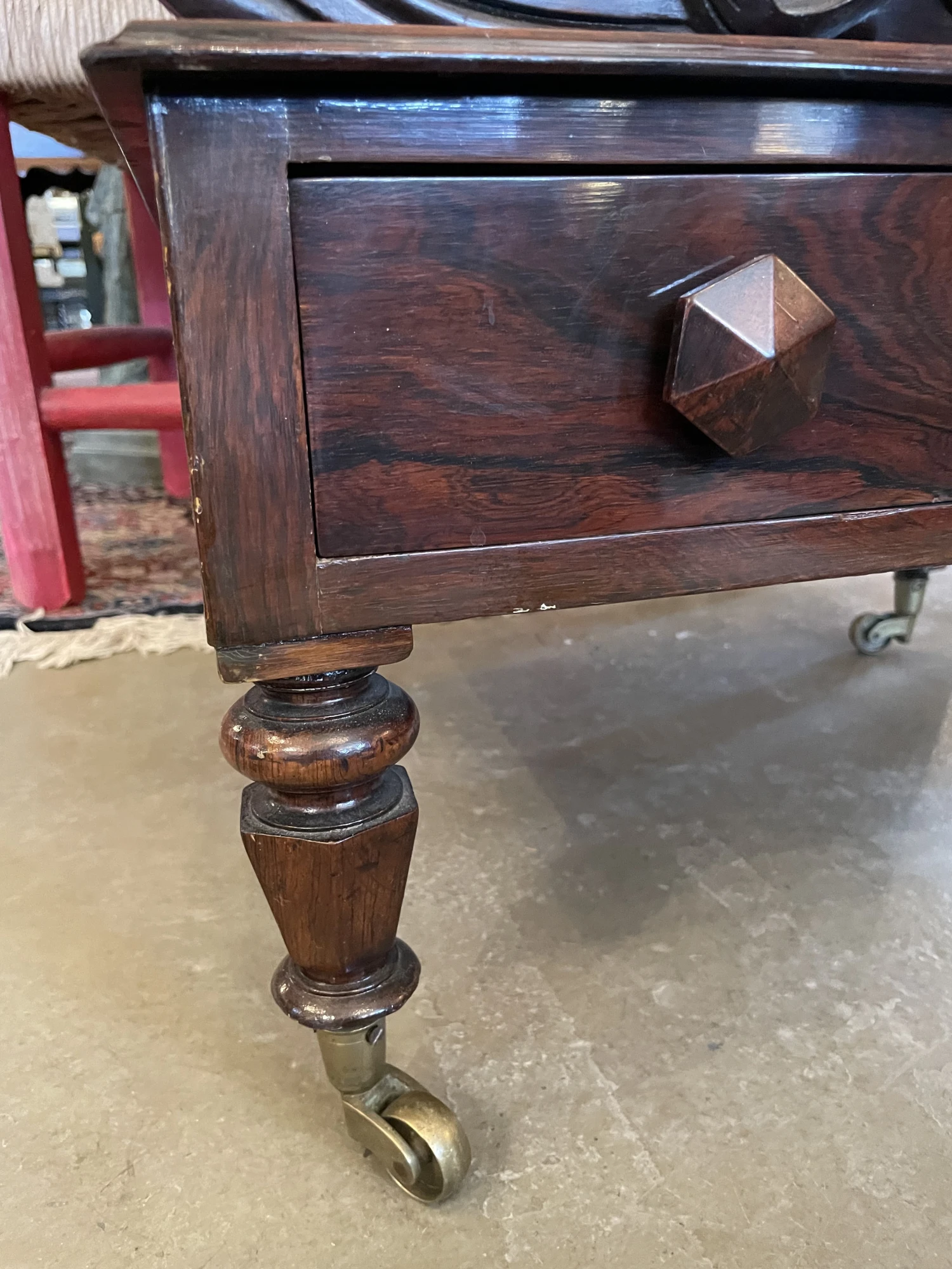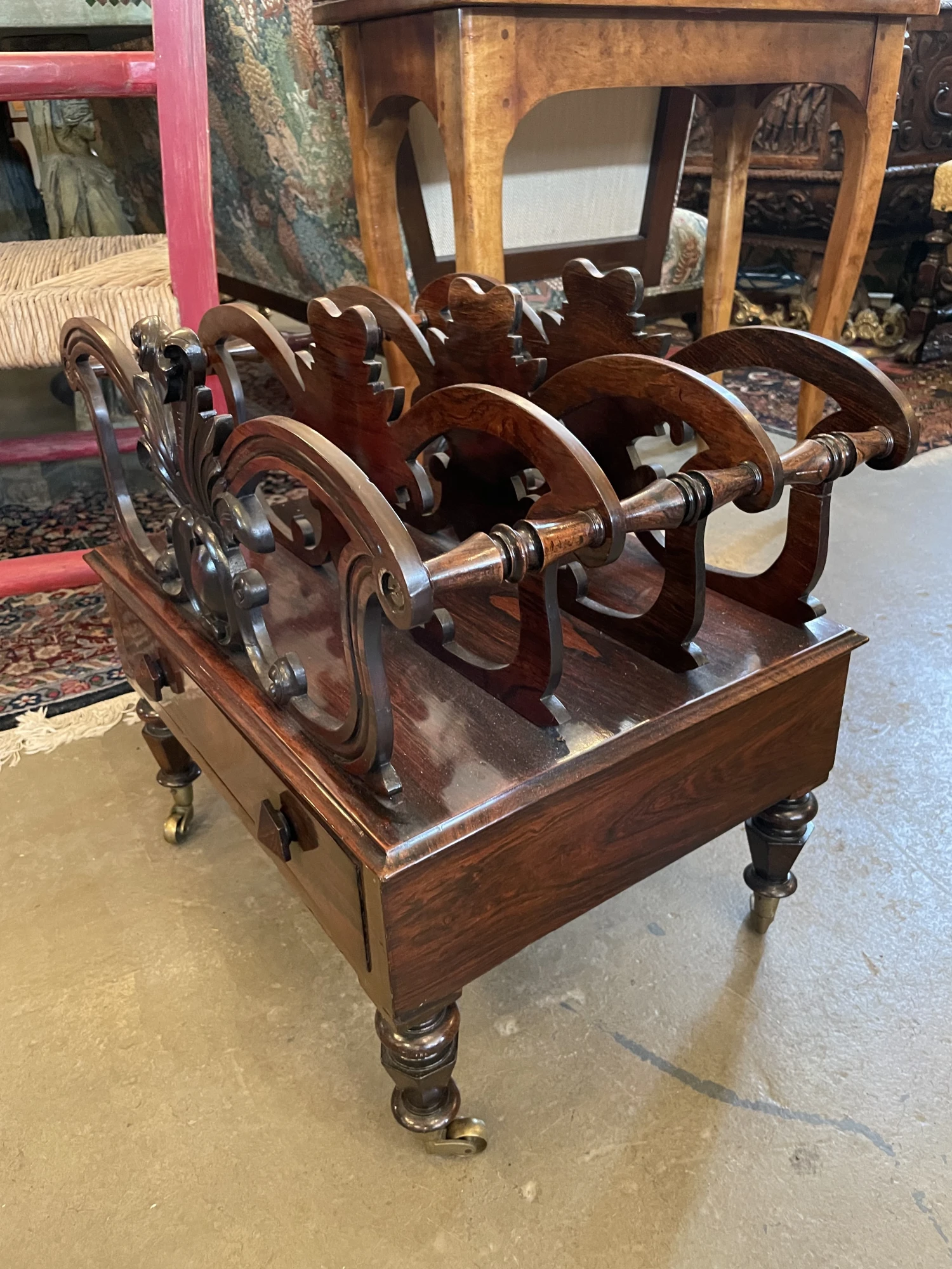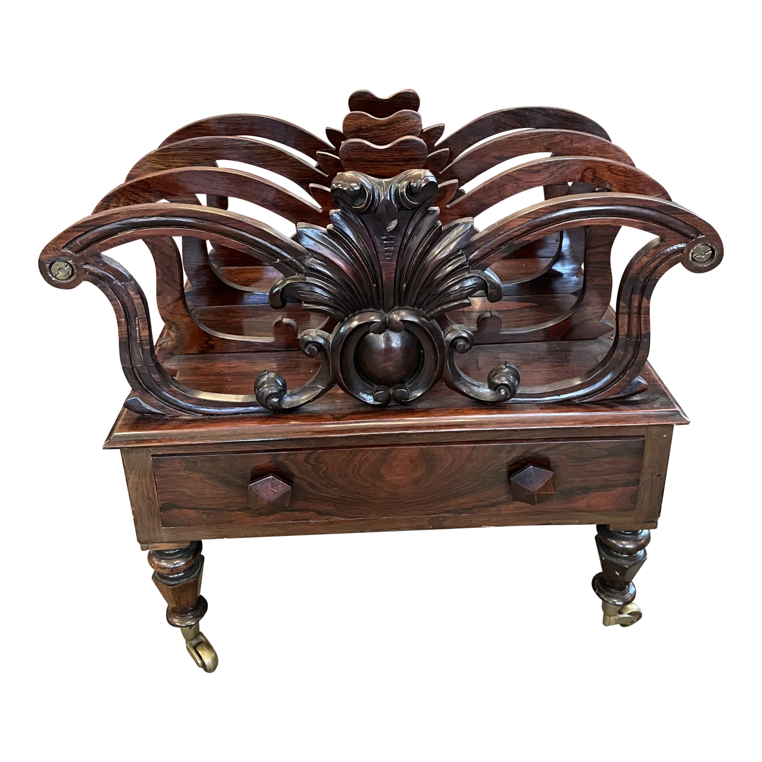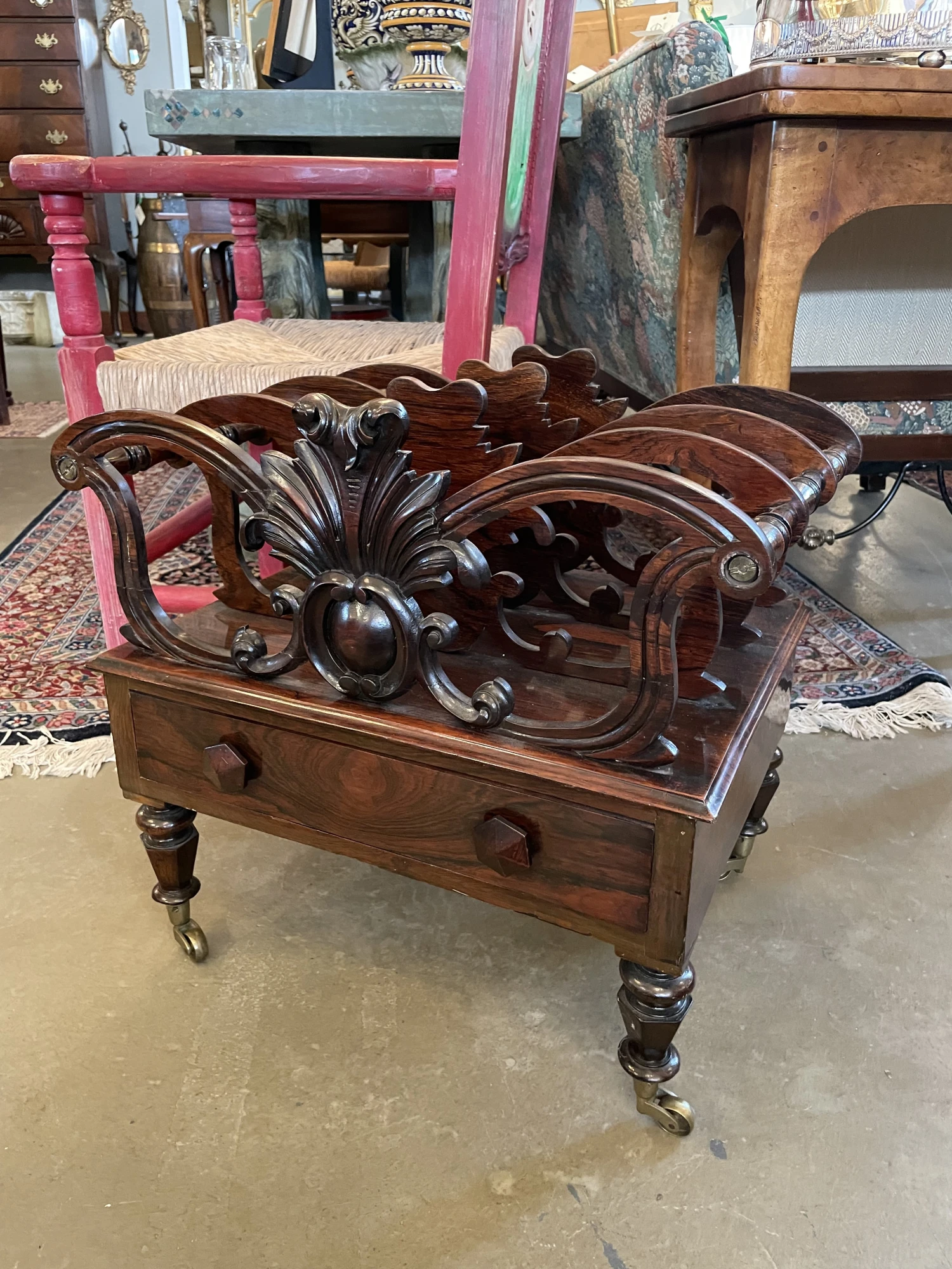 Antique Edwardian Mahogany Regency Style Canterbury Magazine or Book Rack on Casters. Very nice antique condition, sturdy and sound. Caster …