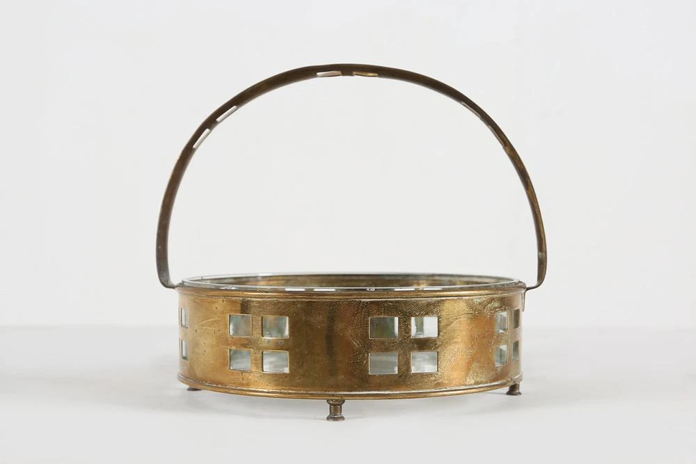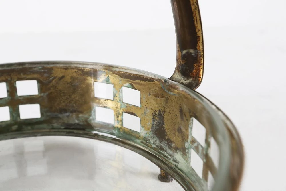 Art Deco fruit basket made of copper and glass made in the manner of Hans Ofner.