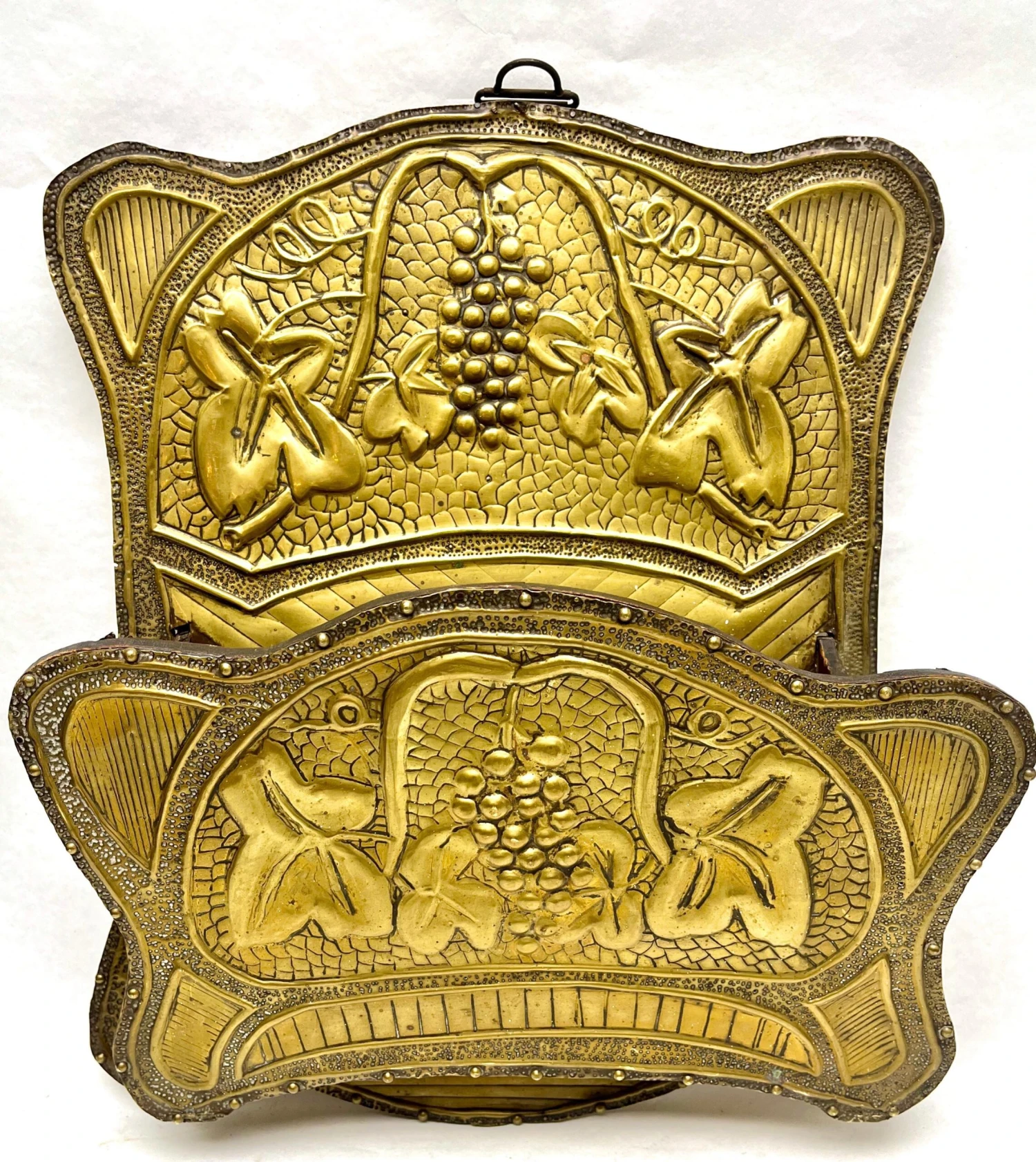Arts & Crafts, beaten copper wall mount magazines holder with original patina, Handmade using traditional artisan techniques from the copper …