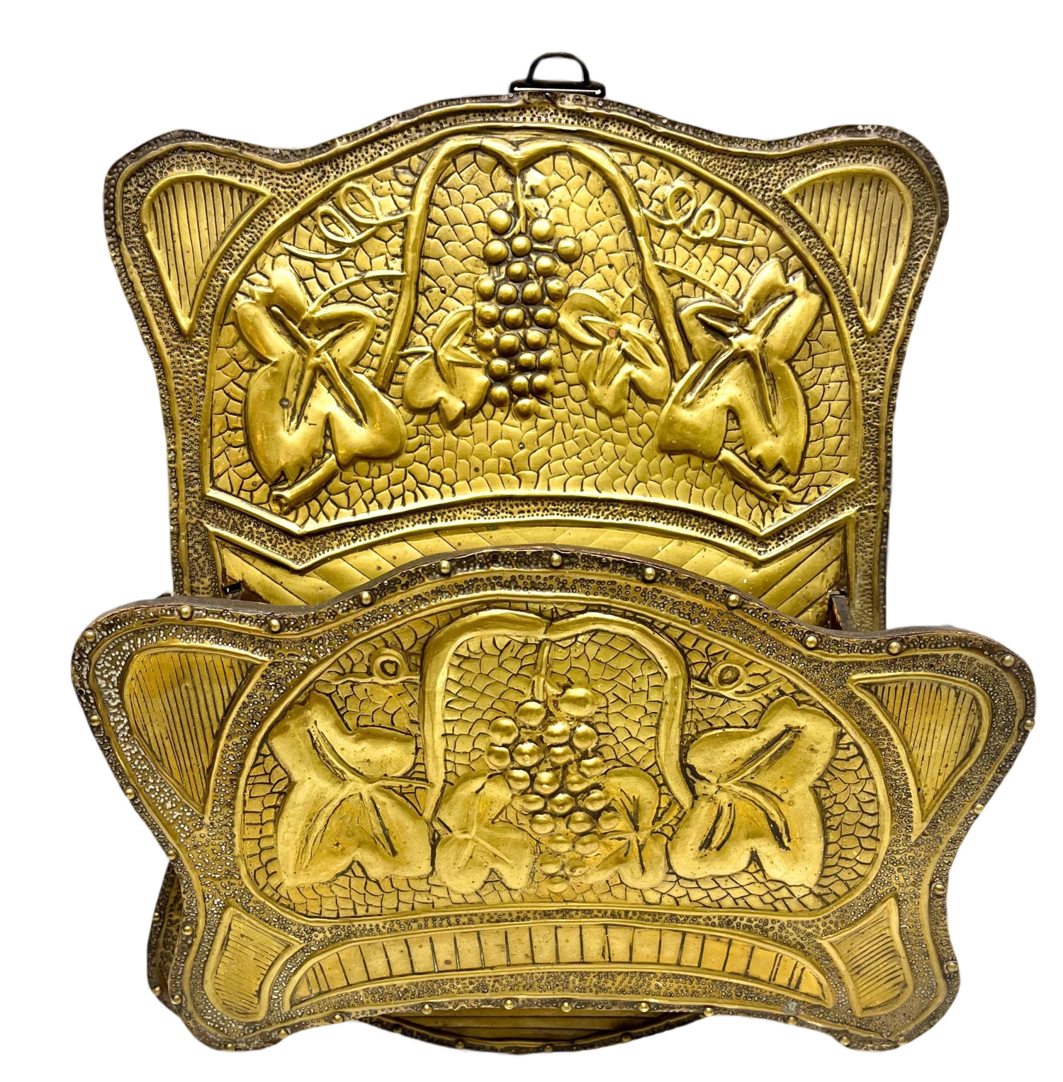 Arts & Crafts, beaten copper wall mount magazines holder with original patina, Handmade using traditional artisan techniques from the copper sheet with crimped edges. Very beautiful and original patina. Looks simply stunning. with best wishes, Geert.