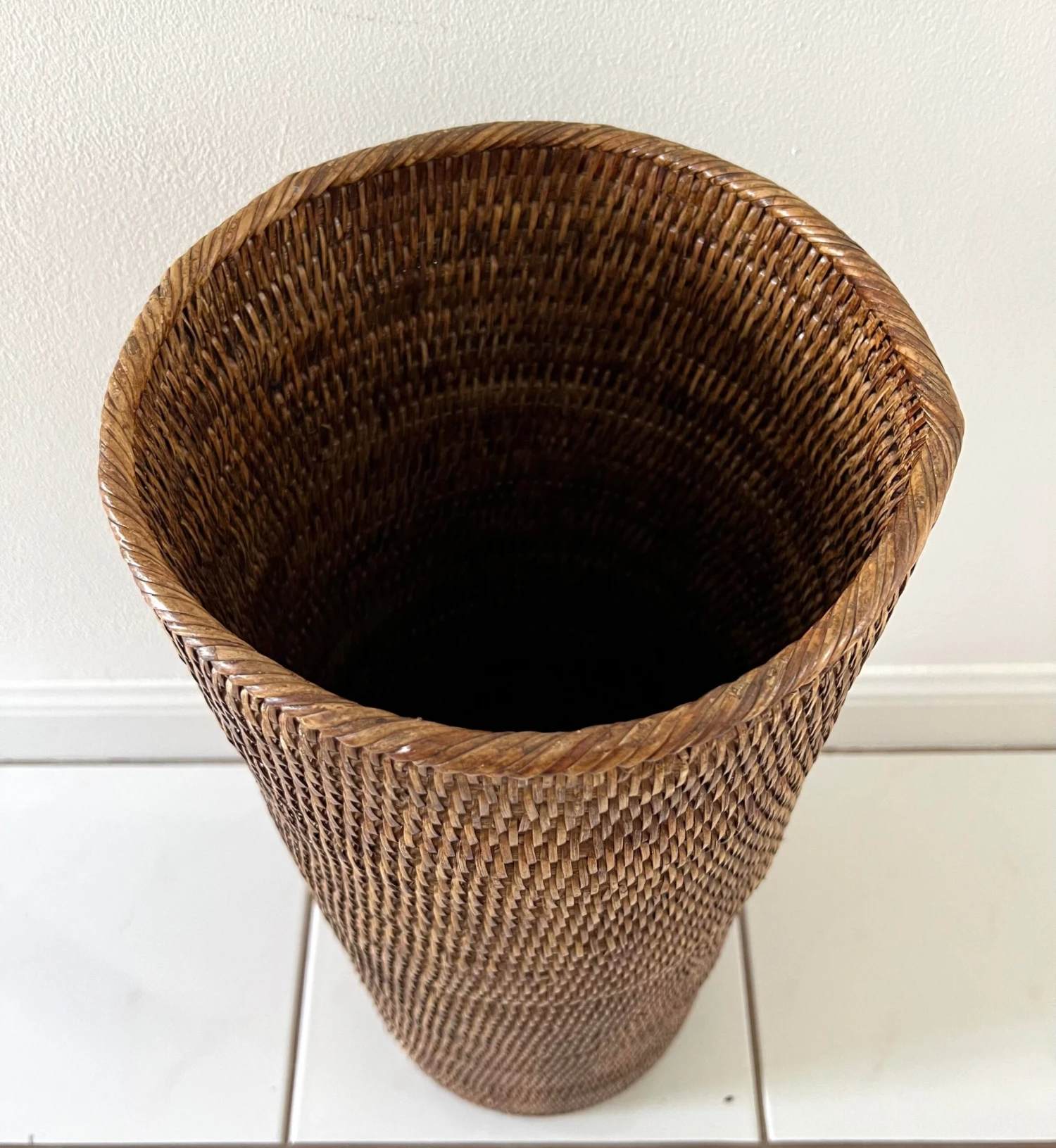Lovely rattan umbrella/cane stand with simple clean lines.
