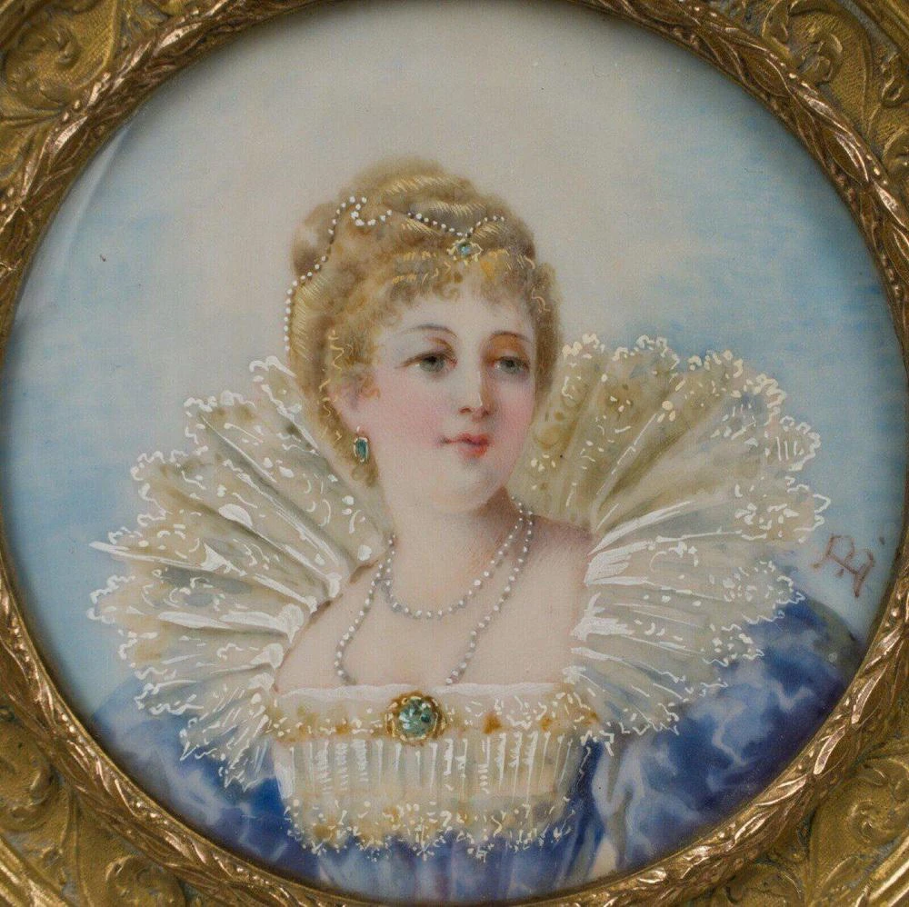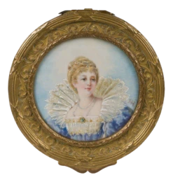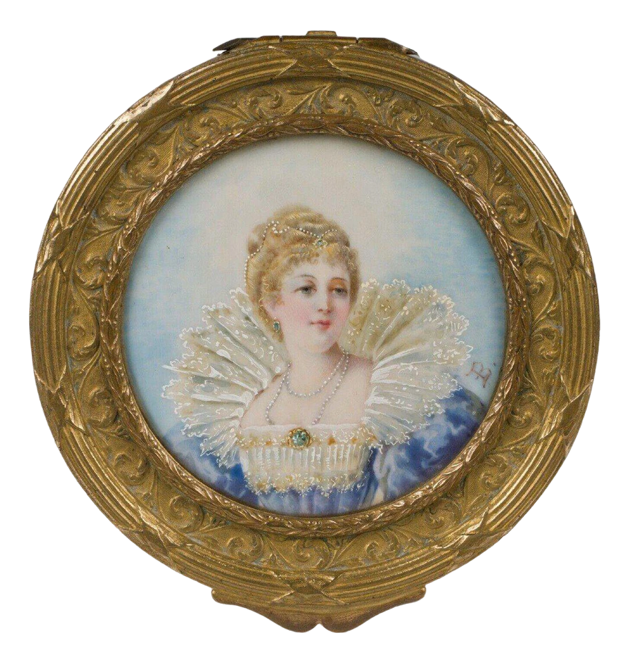 This 19th century box, probably around 1880, is decorated with a pretty hand-made miniature representing an 18th century woman. The …
