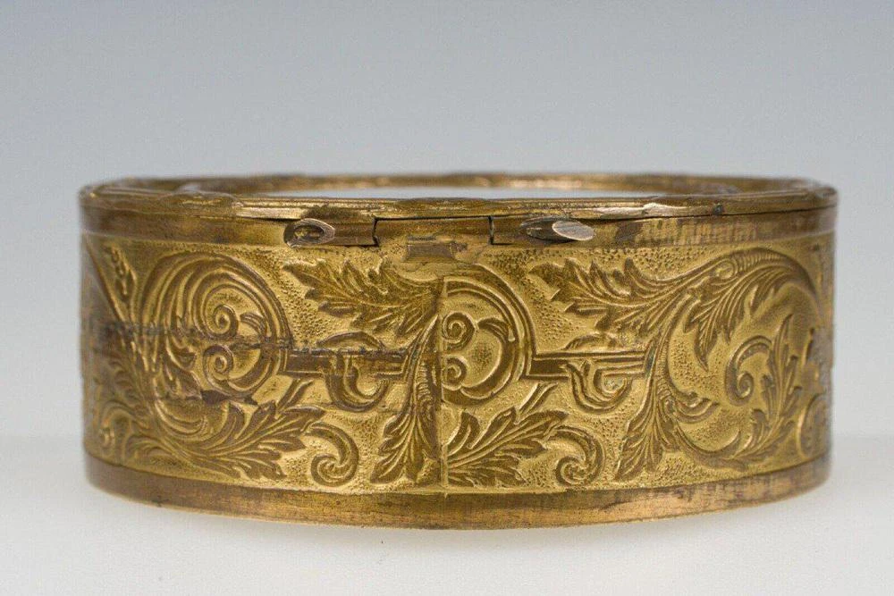This 19th century box, probably around 1880, is decorated with a pretty hand-made miniature representing an 18th century woman. The miniature is of good quality. She has initials. The box is in gilded brass decorated with a floral decoration. It is beautifully made with a nice gilding. We report wear, friction in places. However, this box is in superb condition. Our many photos allow you to appreciate the quality of the object. For the state thank you for detailing the photos. Feel free to zoom. The photos are an integral part of the item. Dimensions: Height: 3 cm Box diameter: 7.8 cm Miniature diameter: 5.3 cm M1290