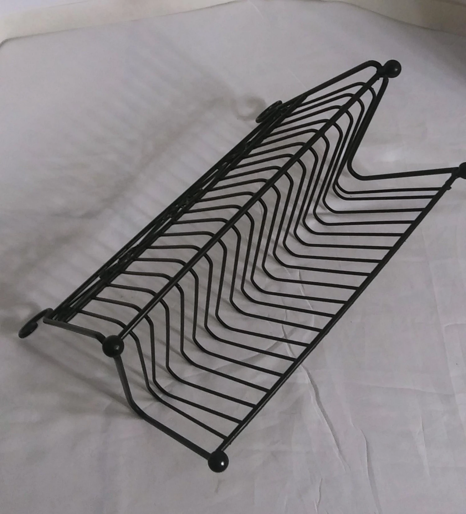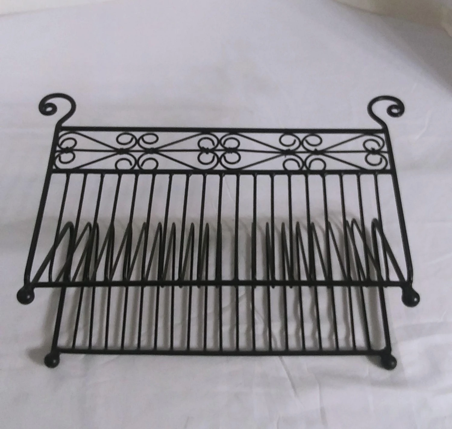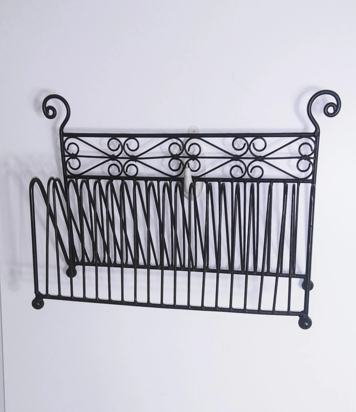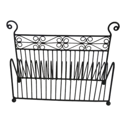 This strong metal storage rack brings back memories of the vinyl 45s. If you still have some, now is the time to take them out of the box and display them with this nostalgic wire rack. This piece is also an excellent way to sort your mail and looks lovely on a desk or countertop. It has a scroll design and little ball “feet”.