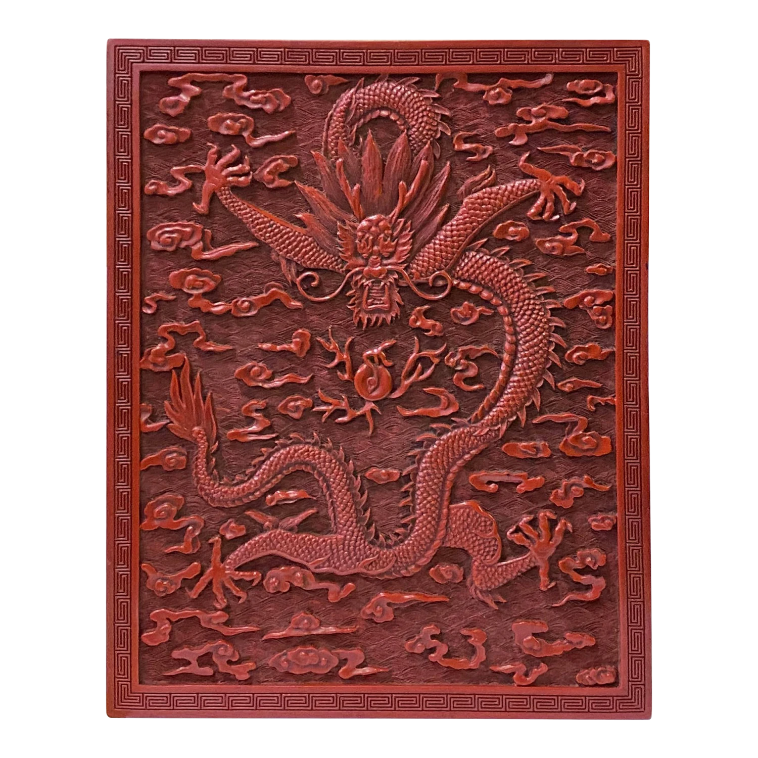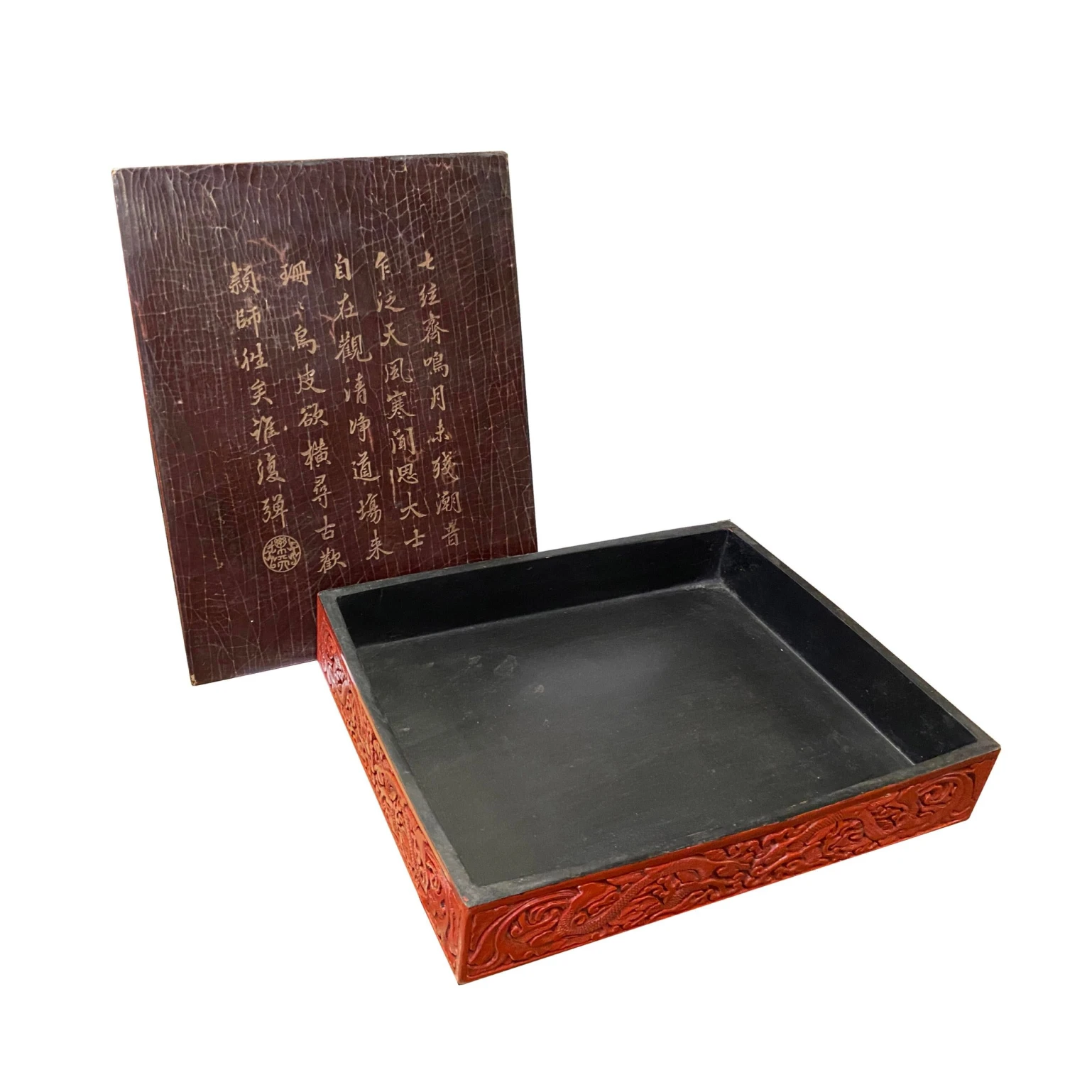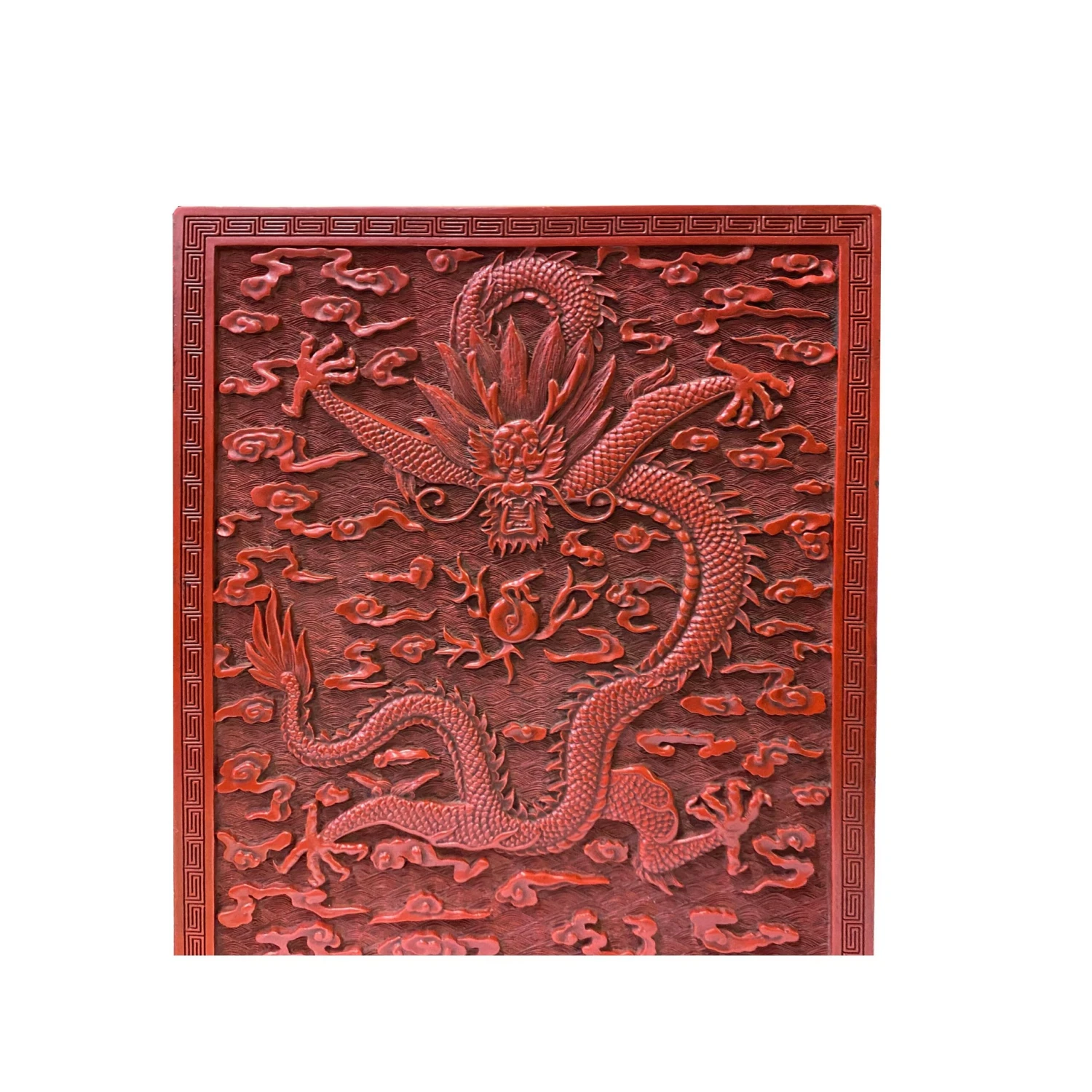 This is a handmade Chinese accent decorative box made of resin lacquer mixed material. The surface is carved with a relief pattern of oriental flowers and dragon pattern. ( not for food storage or serving)