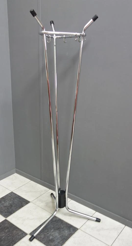 Chrome free standing coat Rack by Willy Van Der Meeren for Tubax 1960s Belgium. This piece is attributed to the mentioned designer/maker. It has no attribution mark and no