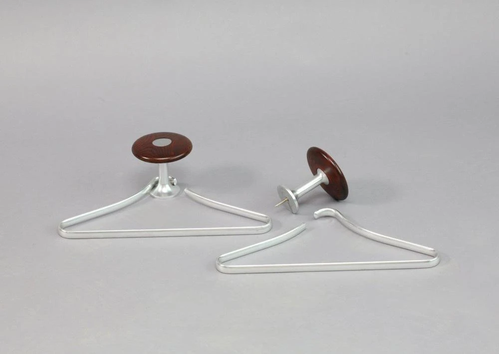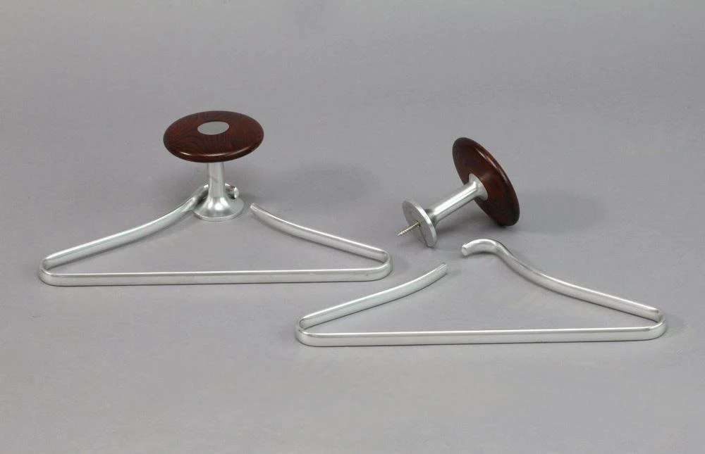 Cloth Hanger in Aluminum and Wood by Hagenauer, 1970, Set of 2, in Flawless conditions. Designed 1970 to 1979 This piece is attributed to the mentioned designer/maker. It has no attribution mark and no