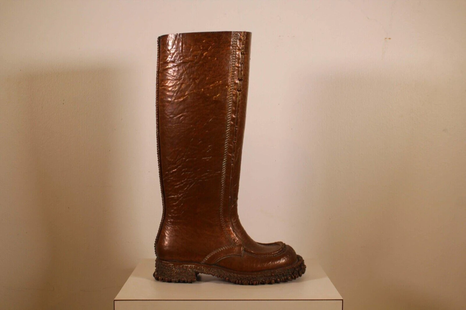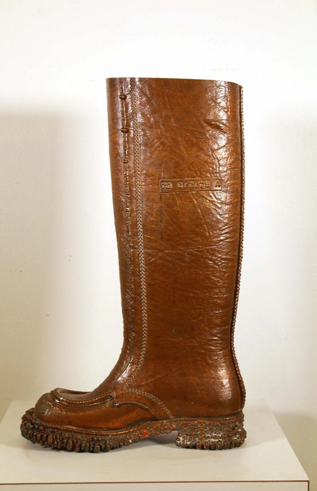 This unique bronzed casted boot up for consideration. Can be used as an umbrella or cane holder. In very good condition. Dimensions: 4″w x 10.5″d x 16.5″h.