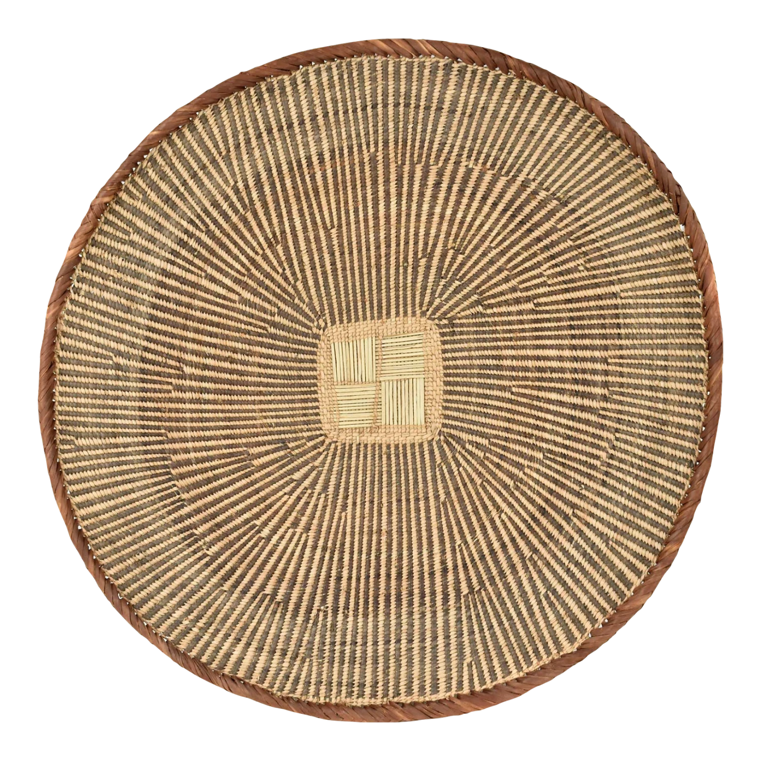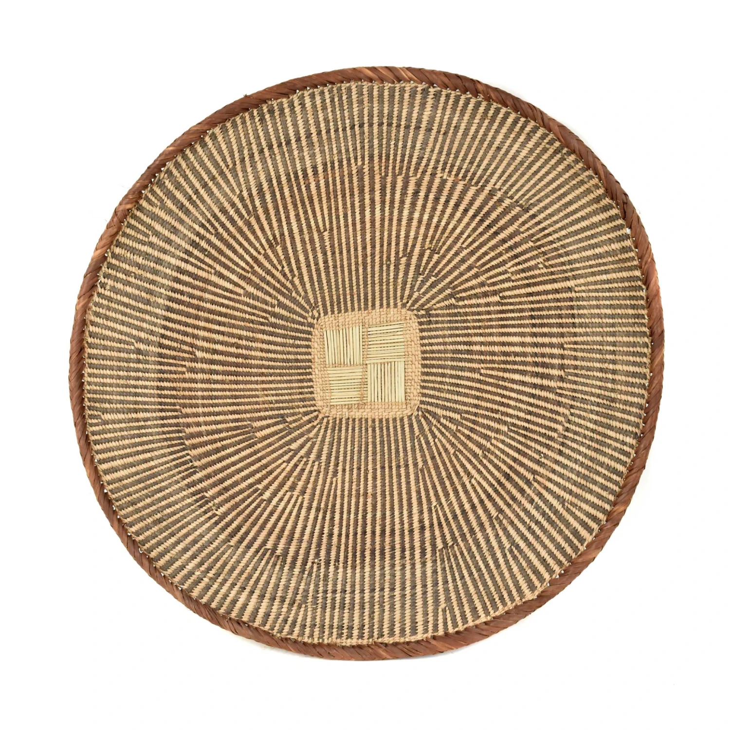 Binga baskets, also commonly called Tonga baskets, are traditional grain winnowing baskets handmade by the Batonga people in the Binga district of Zimbabwe. They are relatively flat and great as wall decor.