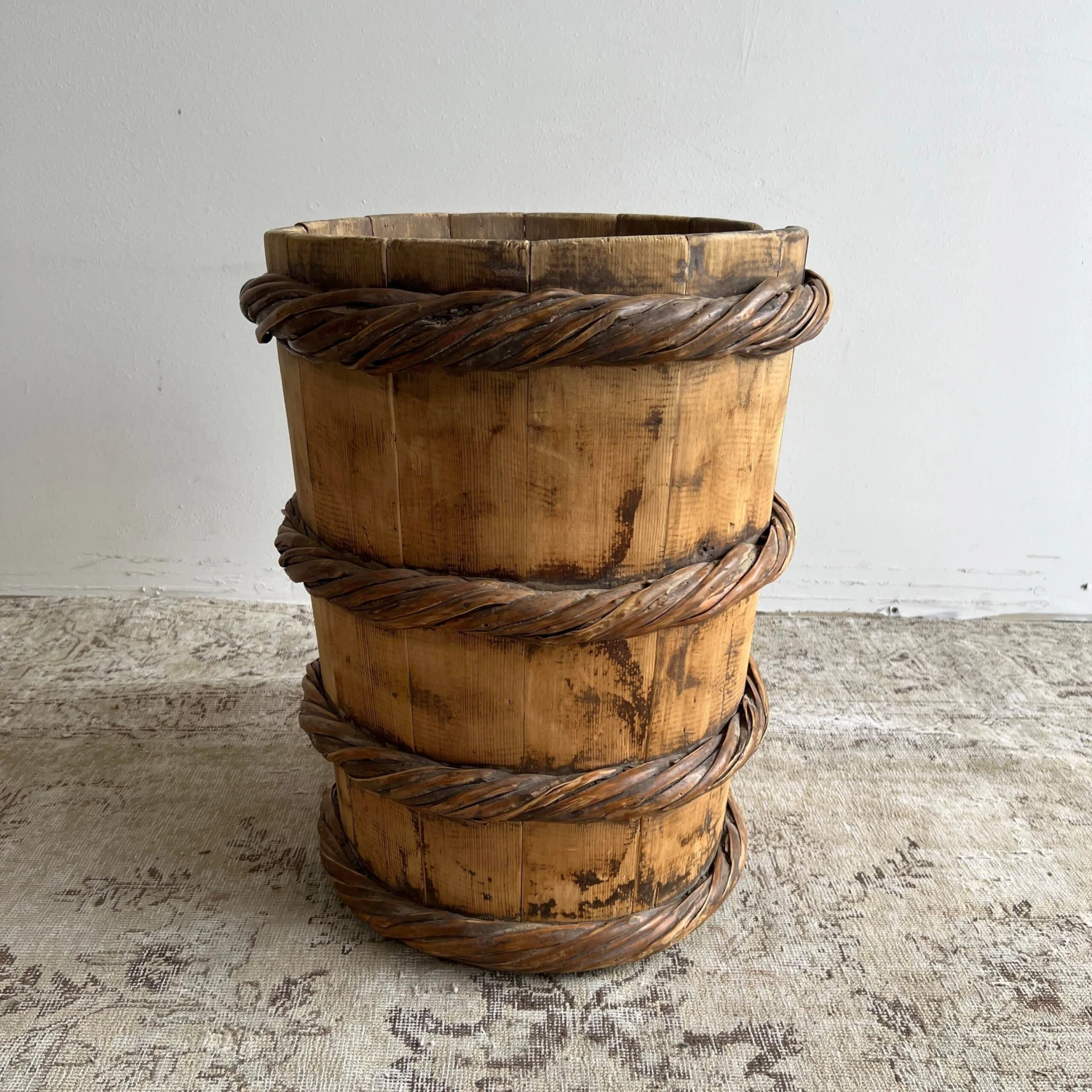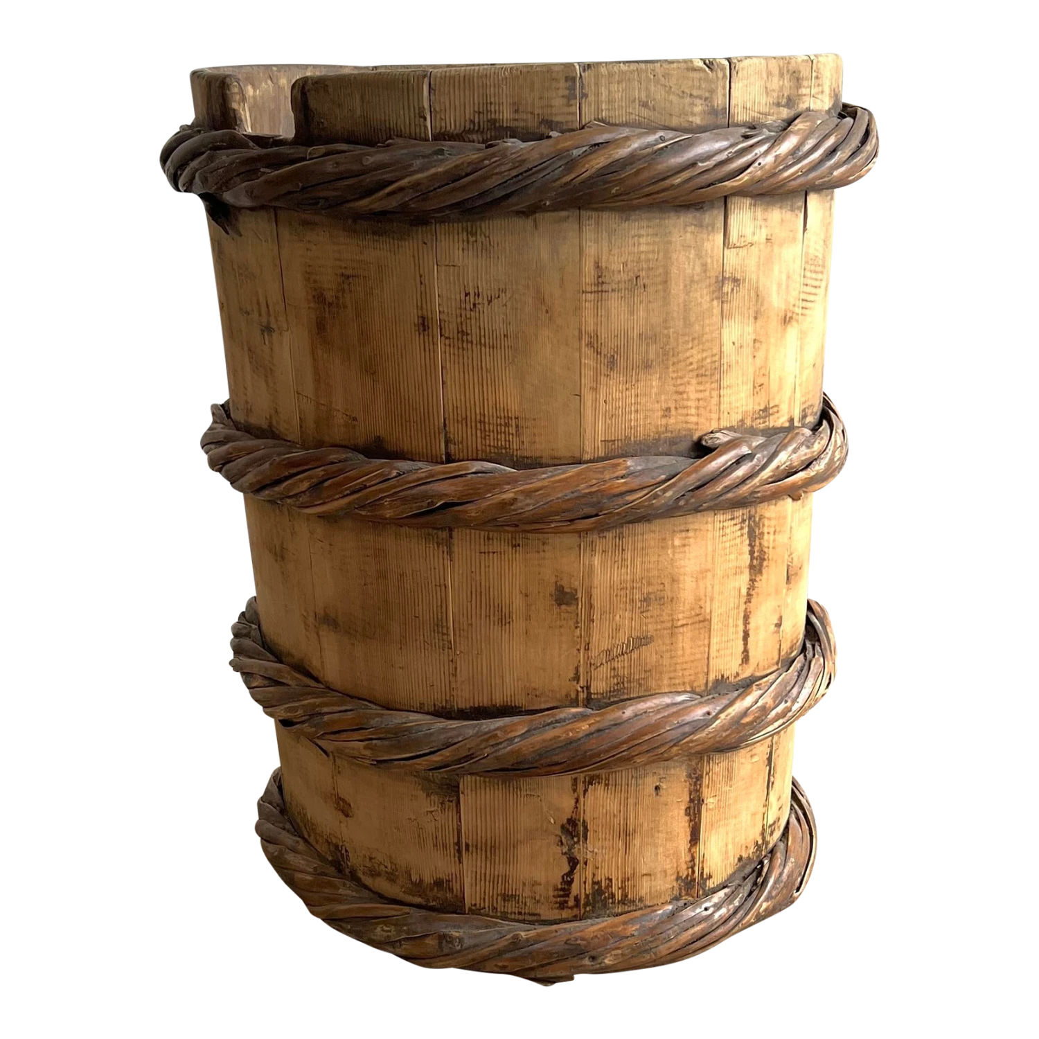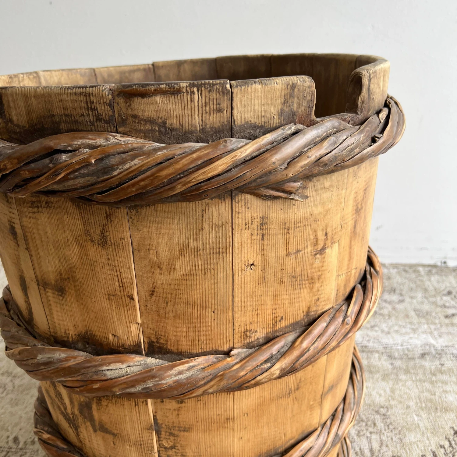 Vintage cypress wooden container for tree or plants, for indoor use only.