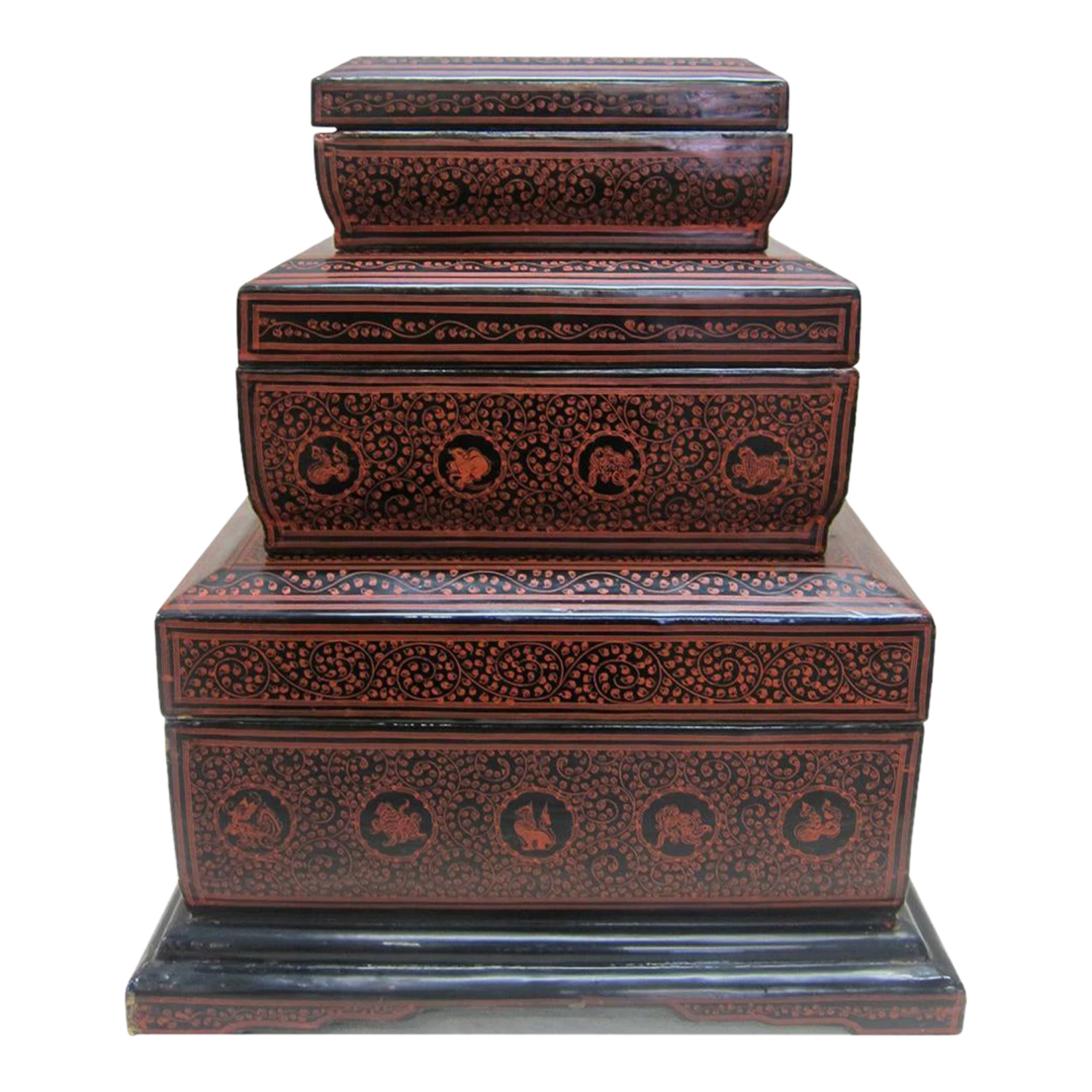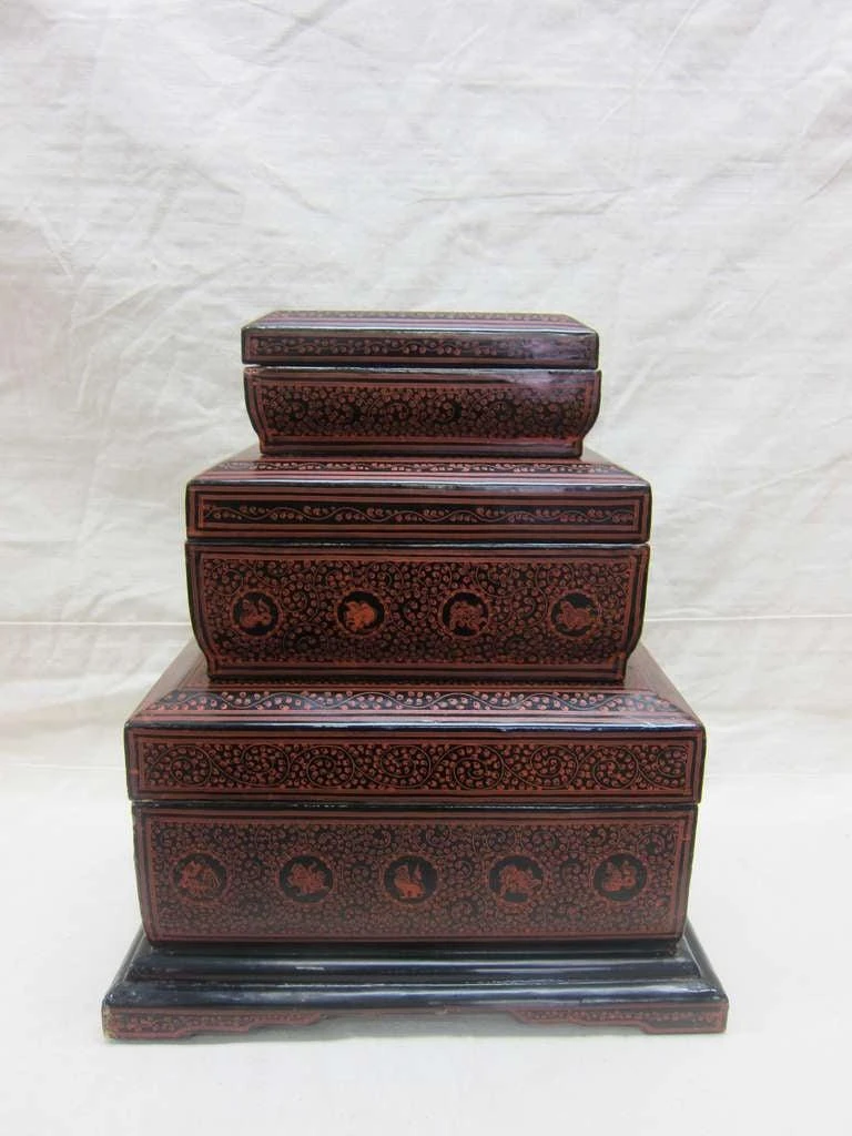 The two smaller boxes have etching work on the bottoms as well see photos.