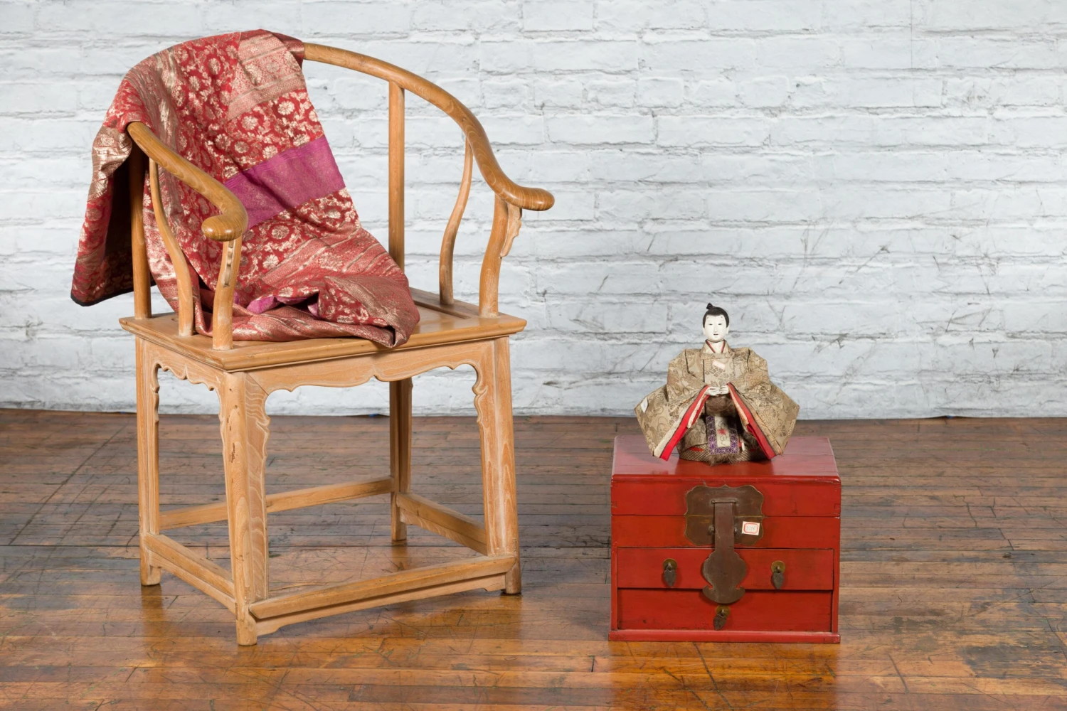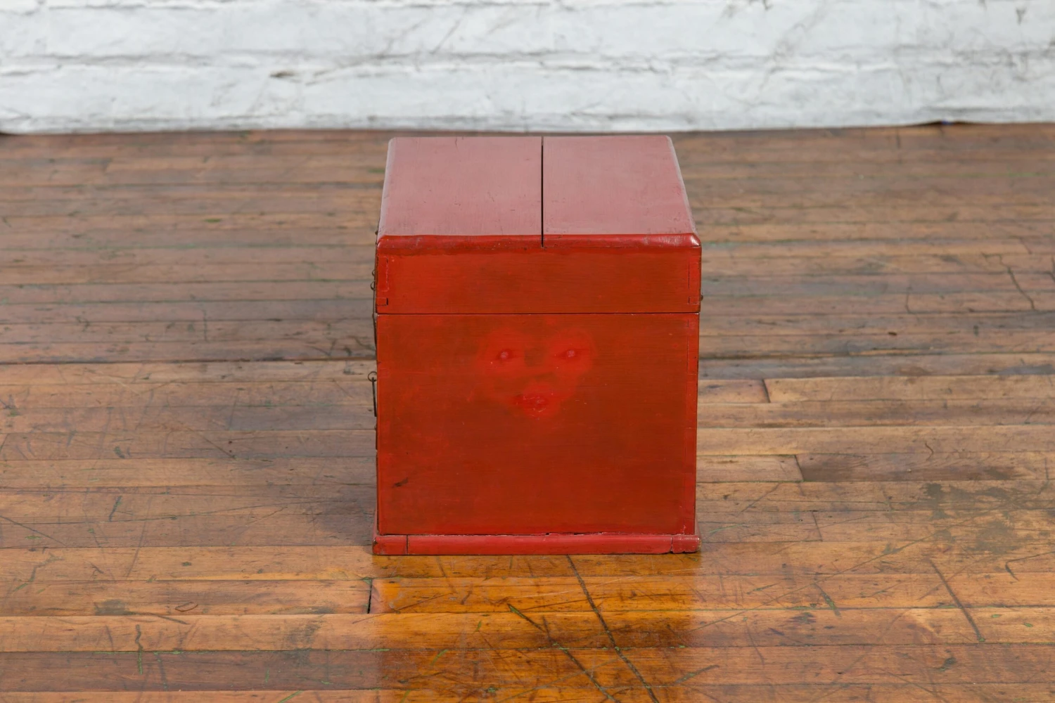 A Chinese red lacquered jewelry box from the early 20th century, with lidded top and three drawers. Created in China …