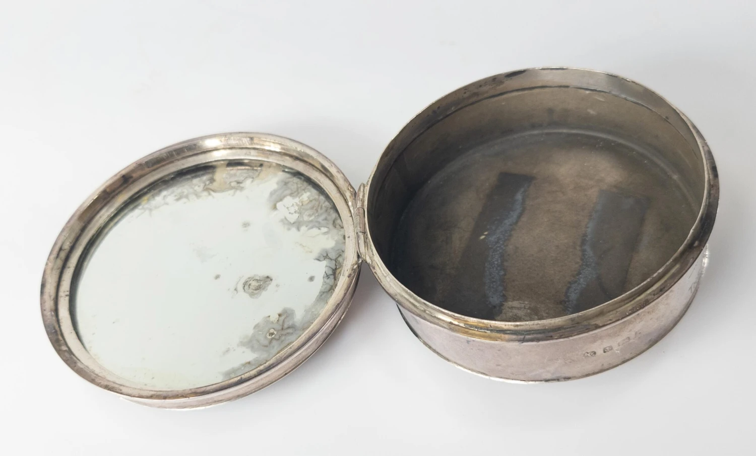 Condition: Some surface tarnishing. Heavy damages to the mirror.
