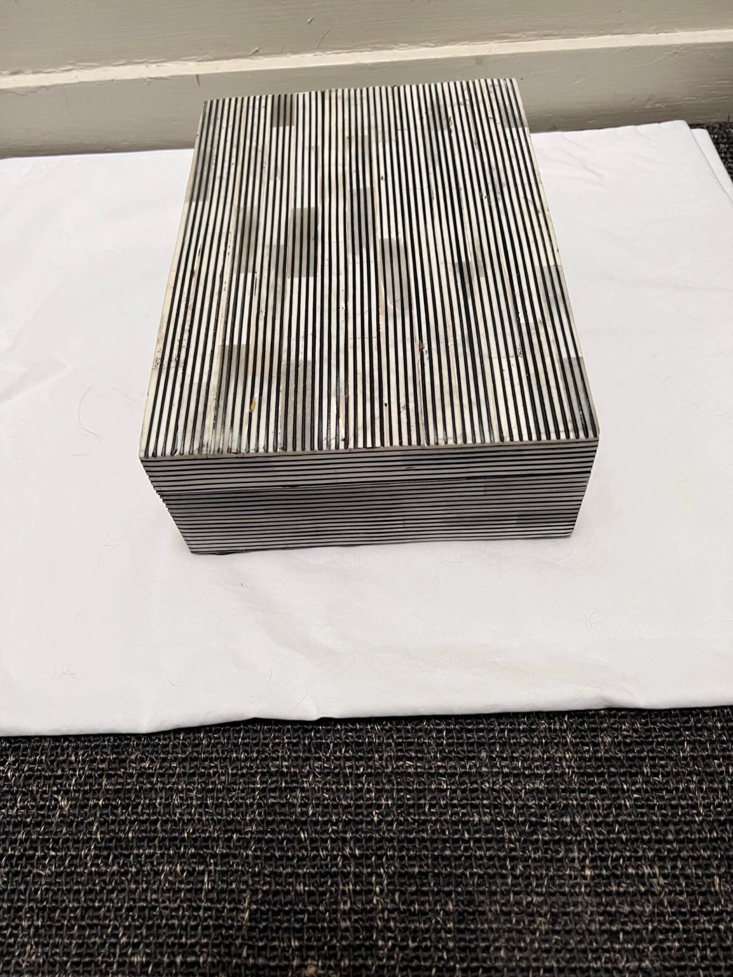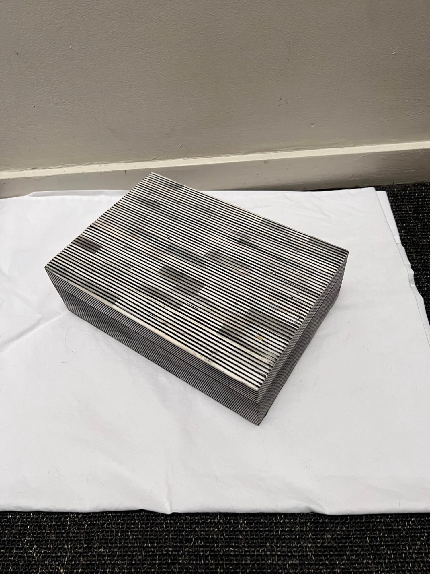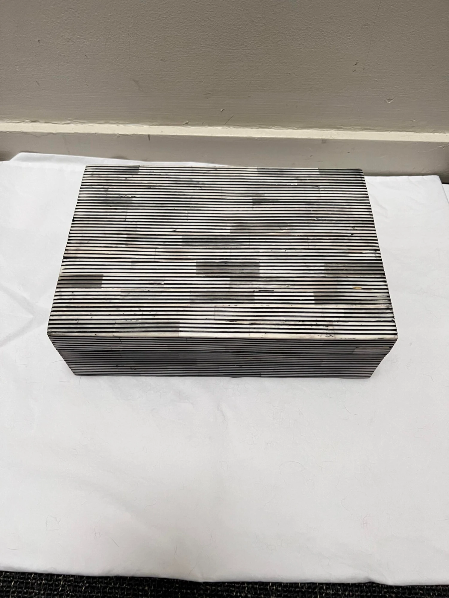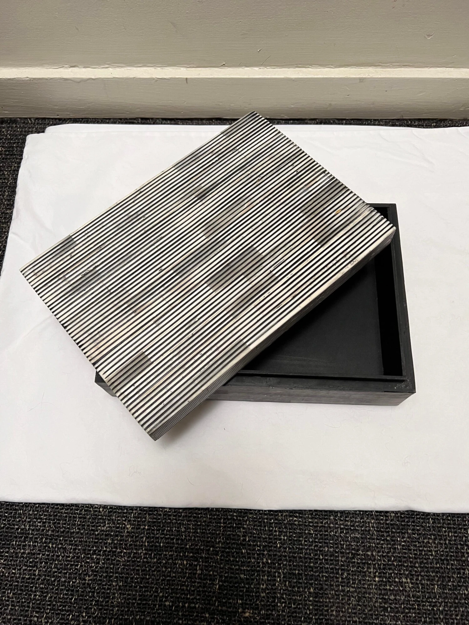 Beautiful composite bone look inlay box , gray , cream , black. Box is from Elk Home