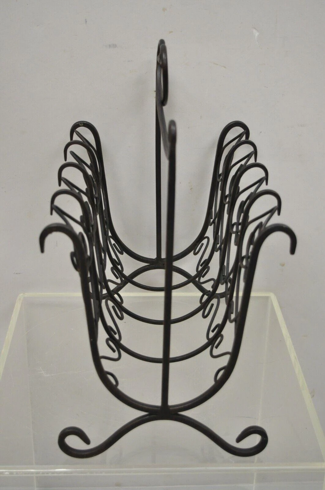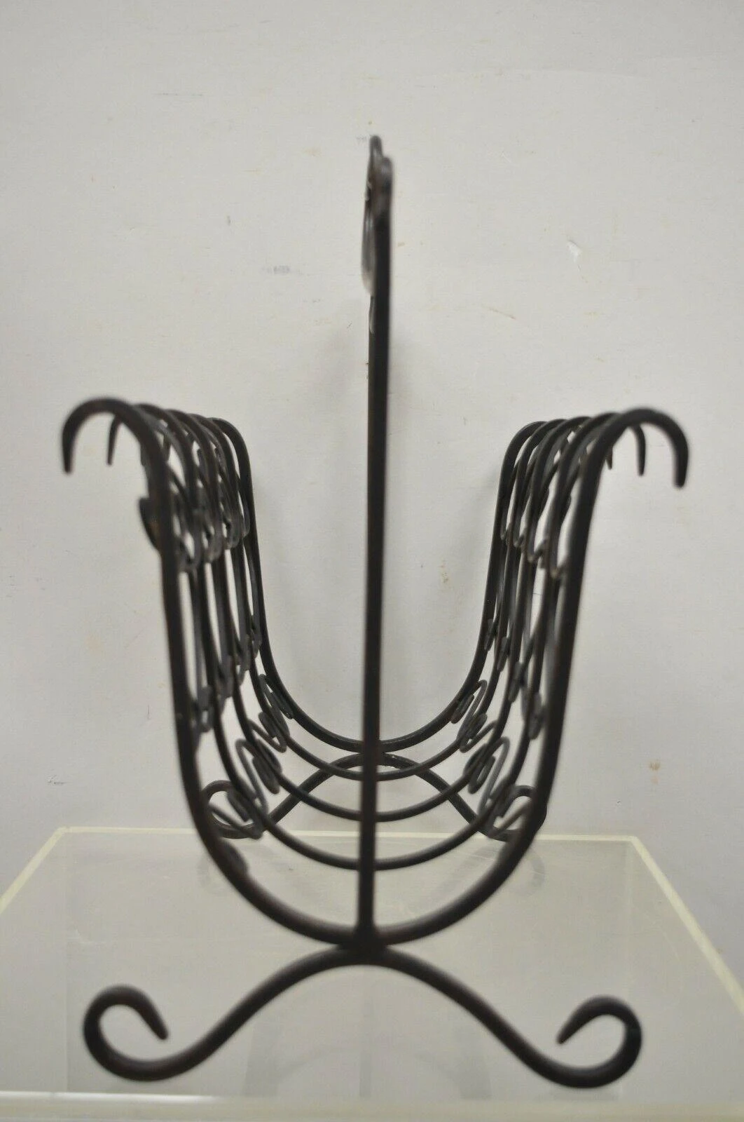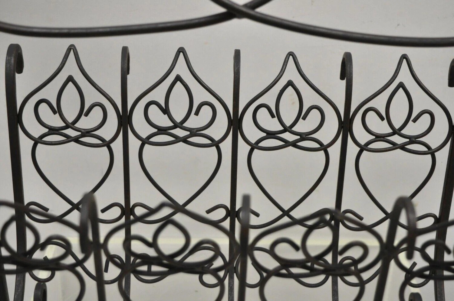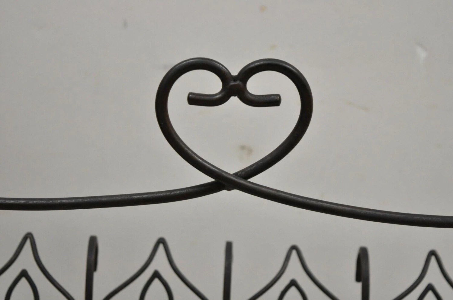 French Style Scrolling Wrought Iron Magazine Rack Stand with Heart. Item features scrolling wrought iron frames, heart design, great style and form. Circa Late 20th Century. Measurements: 16.75″ H x 14.5″ W x 10″ D