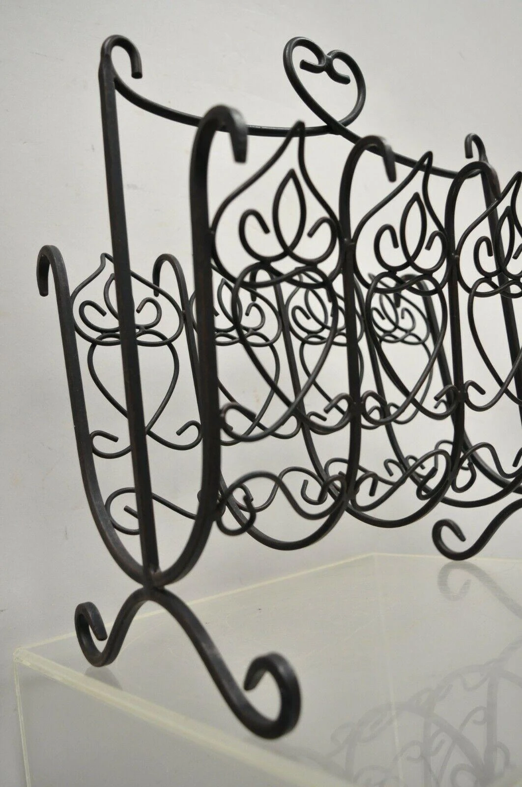 French Style Scrolling Wrought Iron Magazine Rack Stand with Heart. Item features scrolling wrought iron frames, heart design, great style …