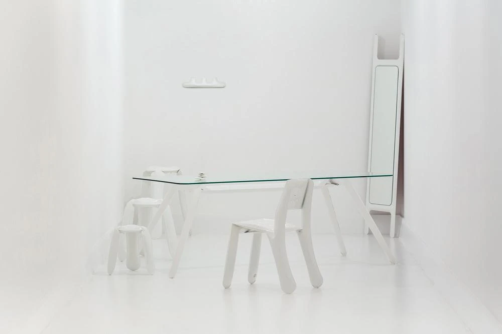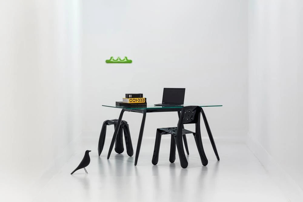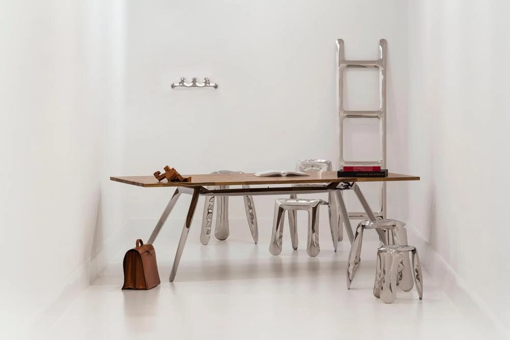 Graphite kamm 5 coat hanger by zieta dimensions: d 6 x w 77 x h 13 cm material: stainless steel. Finish: polished. Lacquered. Kamm is a coat hanger, welded, and inflated very carefully under high pressure to create unique bulges and waves. Kamm can be used for hanging coats, shawls, jewelry, bags, and other accessories. This piece is attributed to the mentioned designer/maker. It has no attribution mark and no