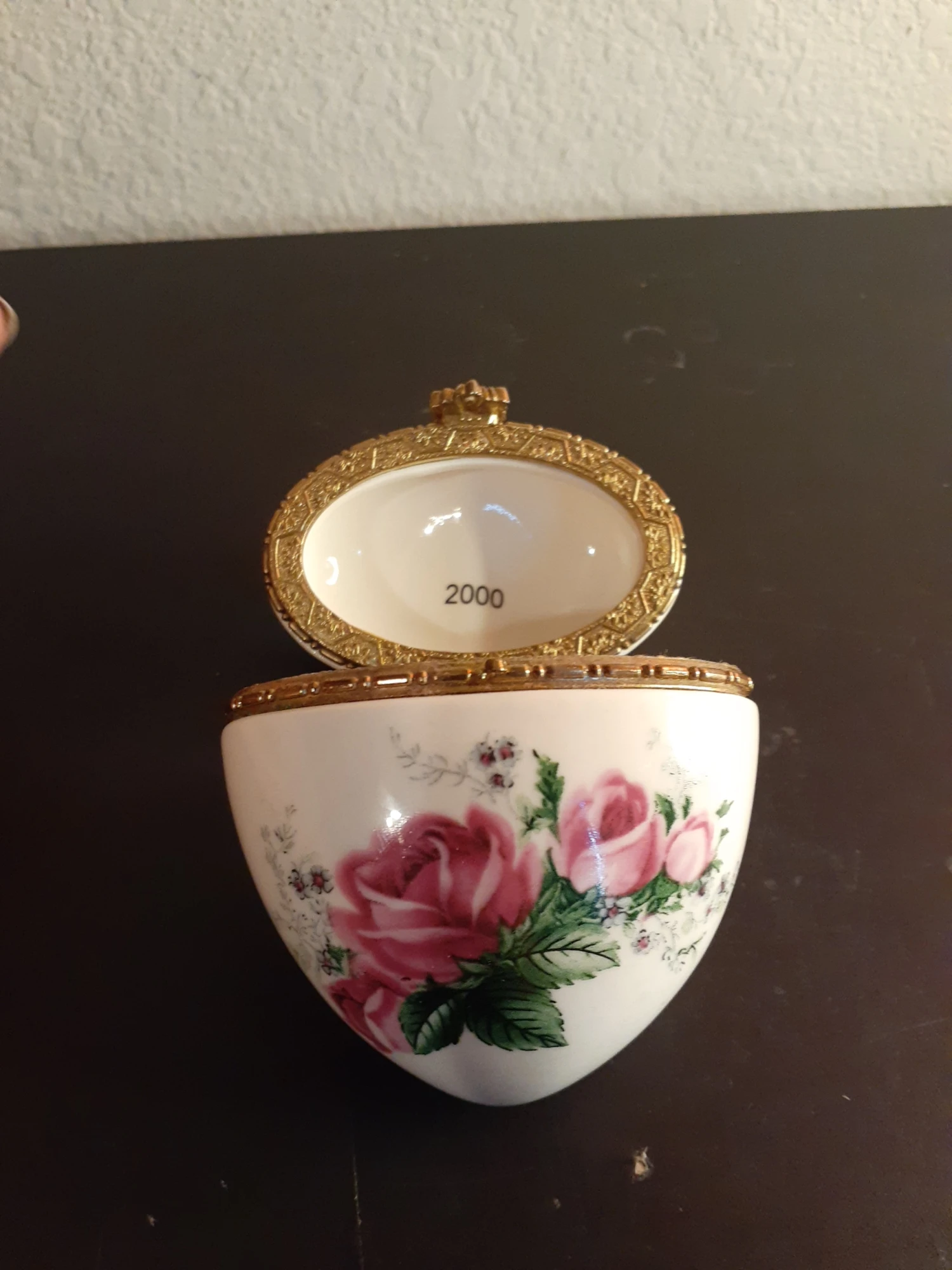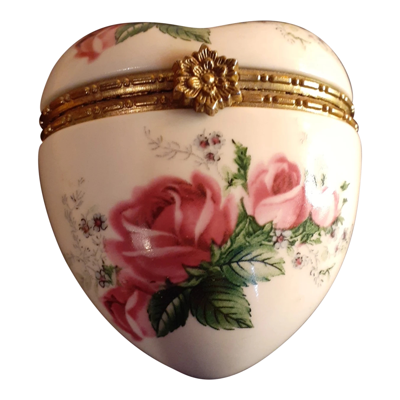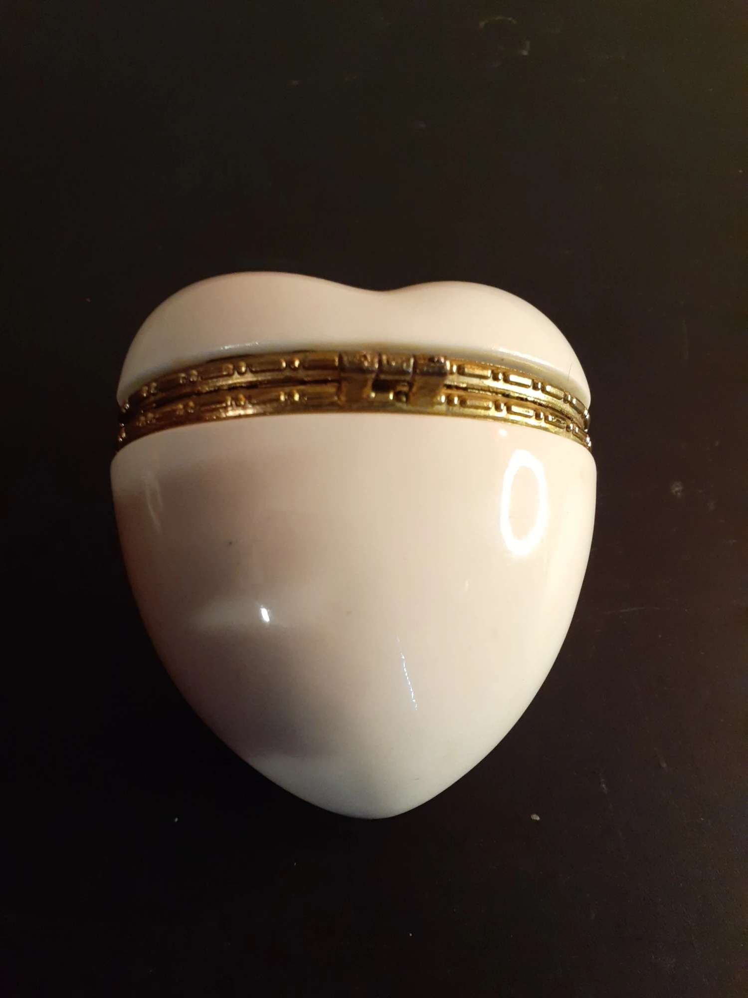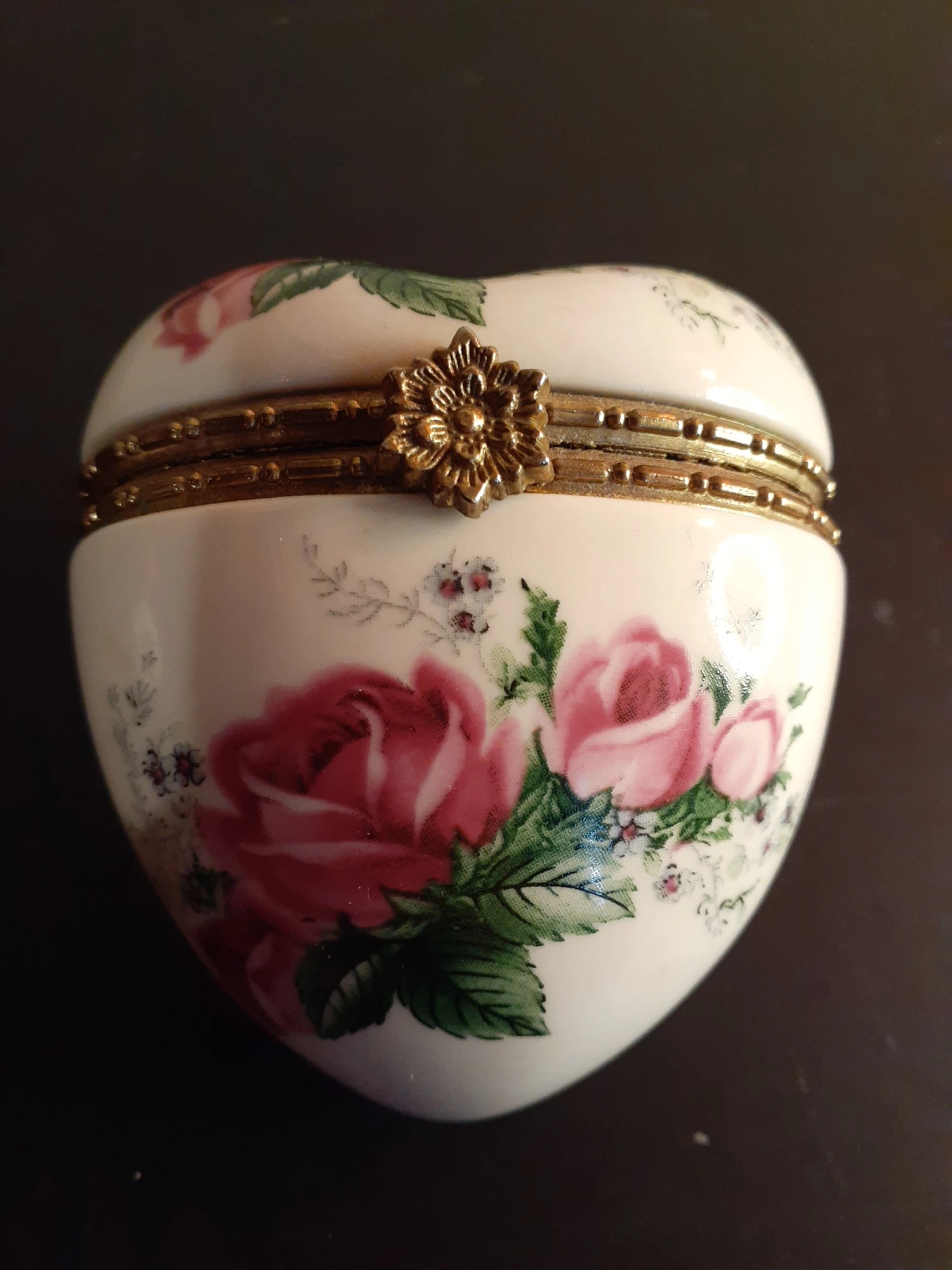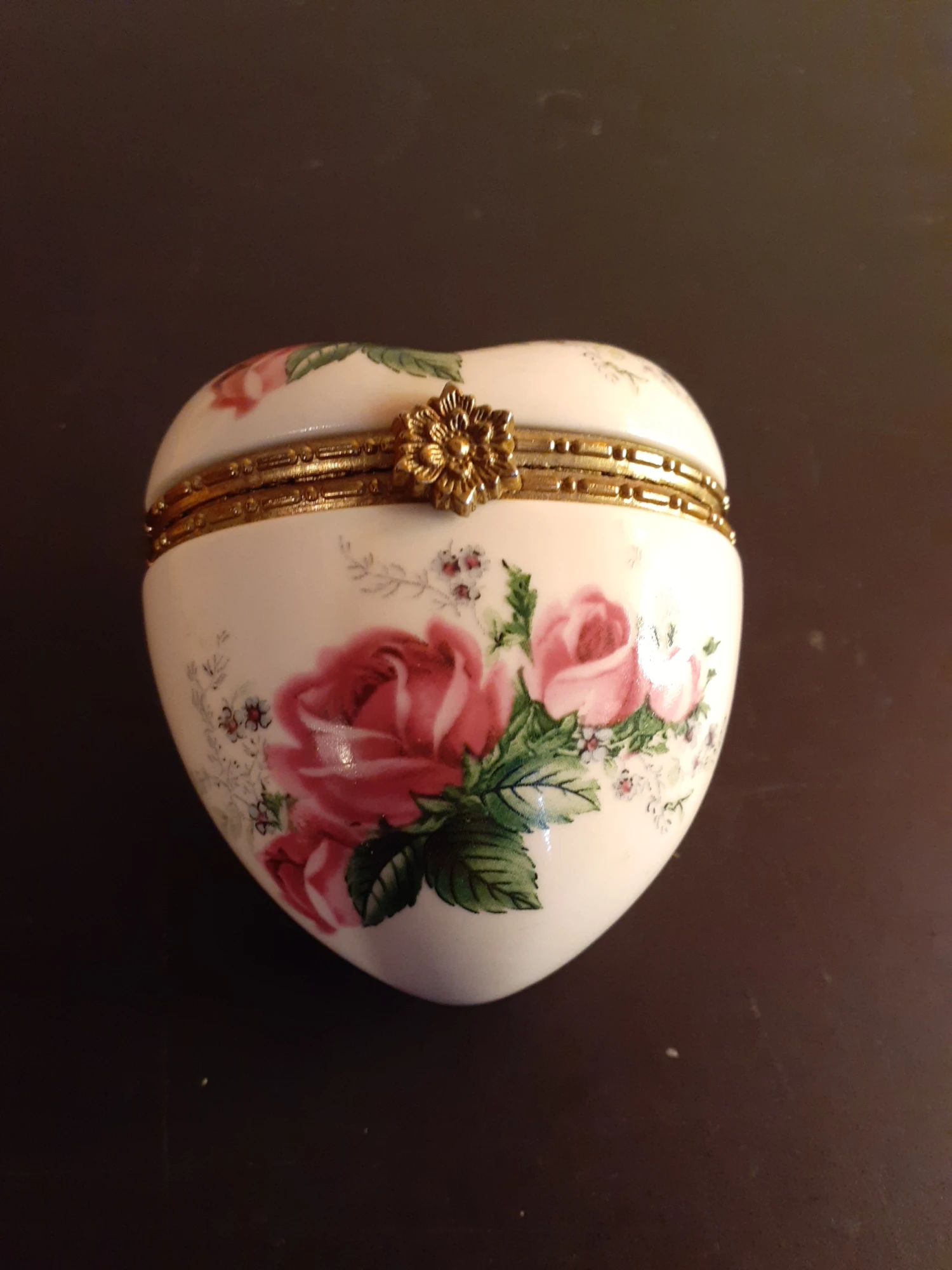 This is a Handpainted Ceramic 3″ Heart Shaped Trinket Holder. Procured at auction