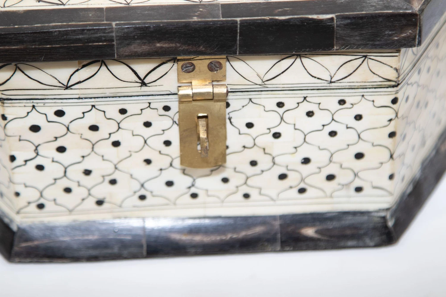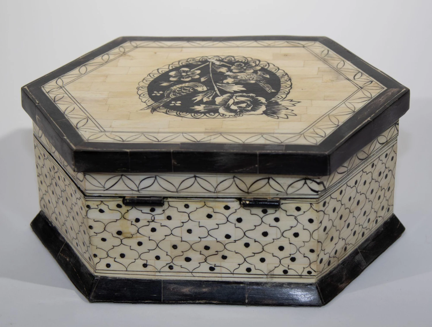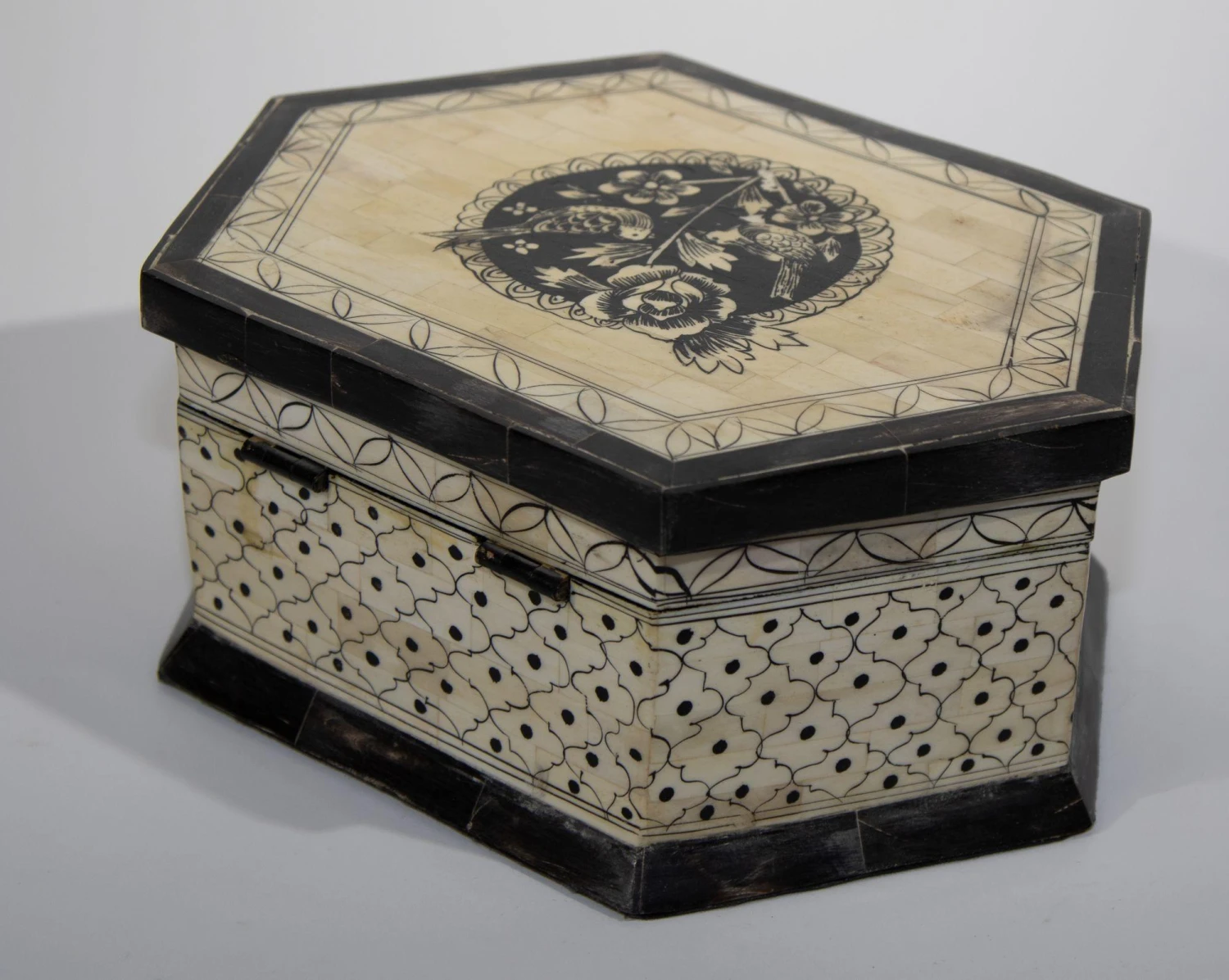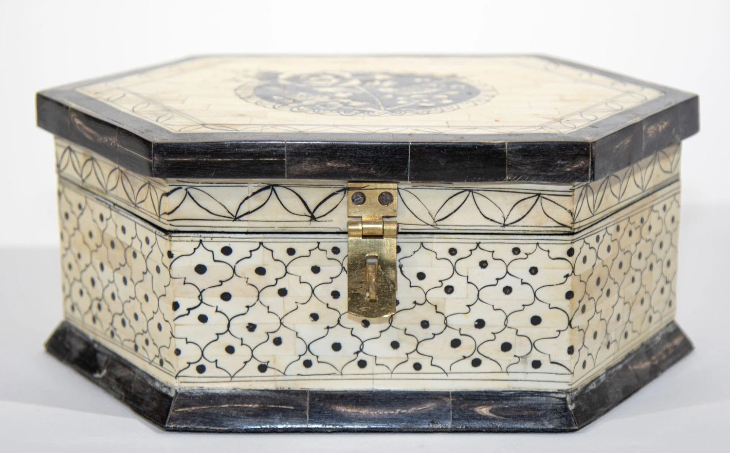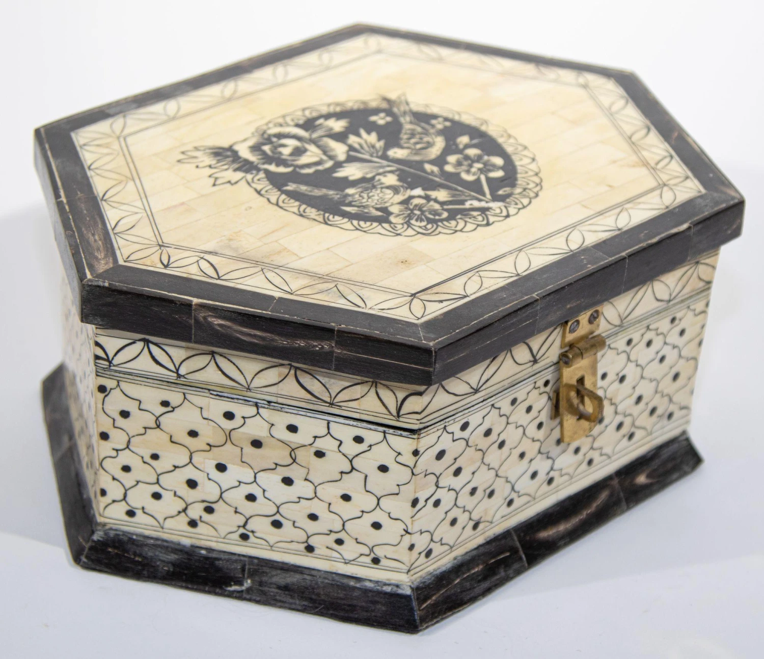 Large Decorative Mughal Raj Vizagapatam Jewelry hexagonal shape Box.