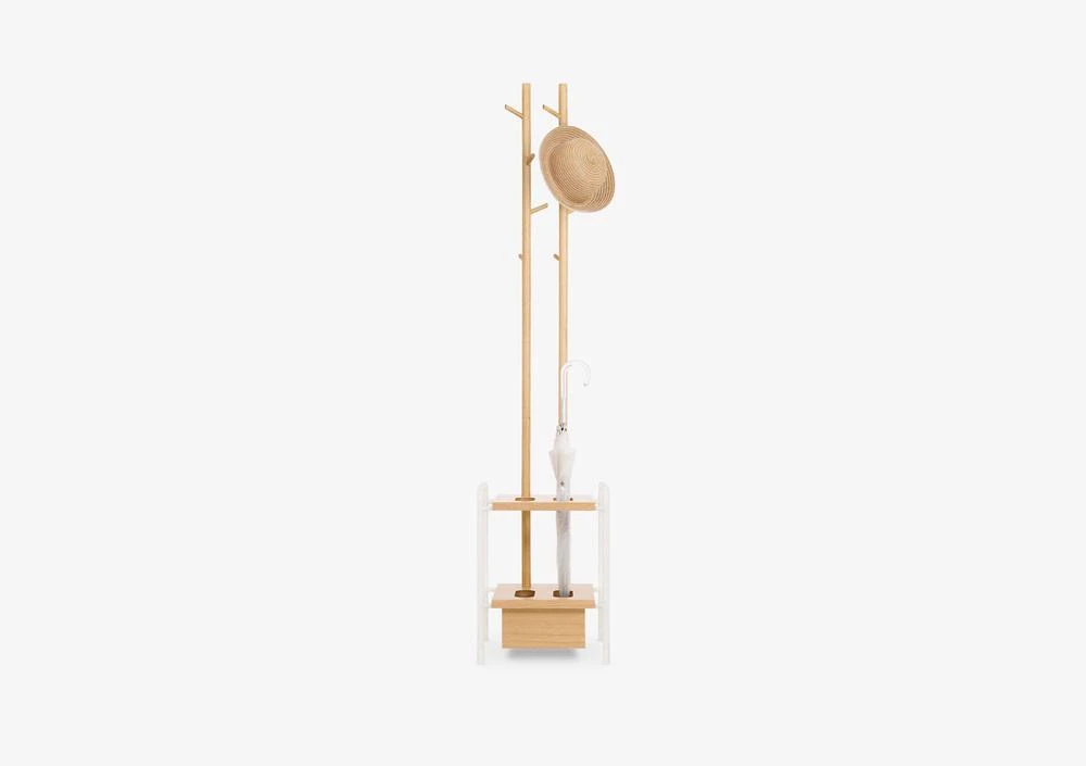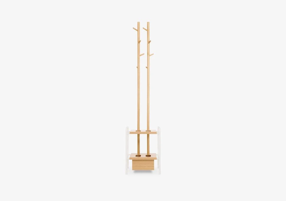 1 Coat stand – Oak – Natural – Includes 2 coat hangers in the same finish of the tops and drawer with 1 water drip vase