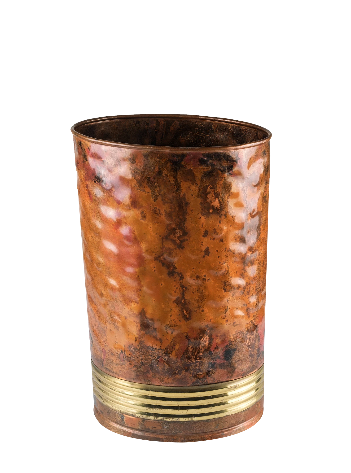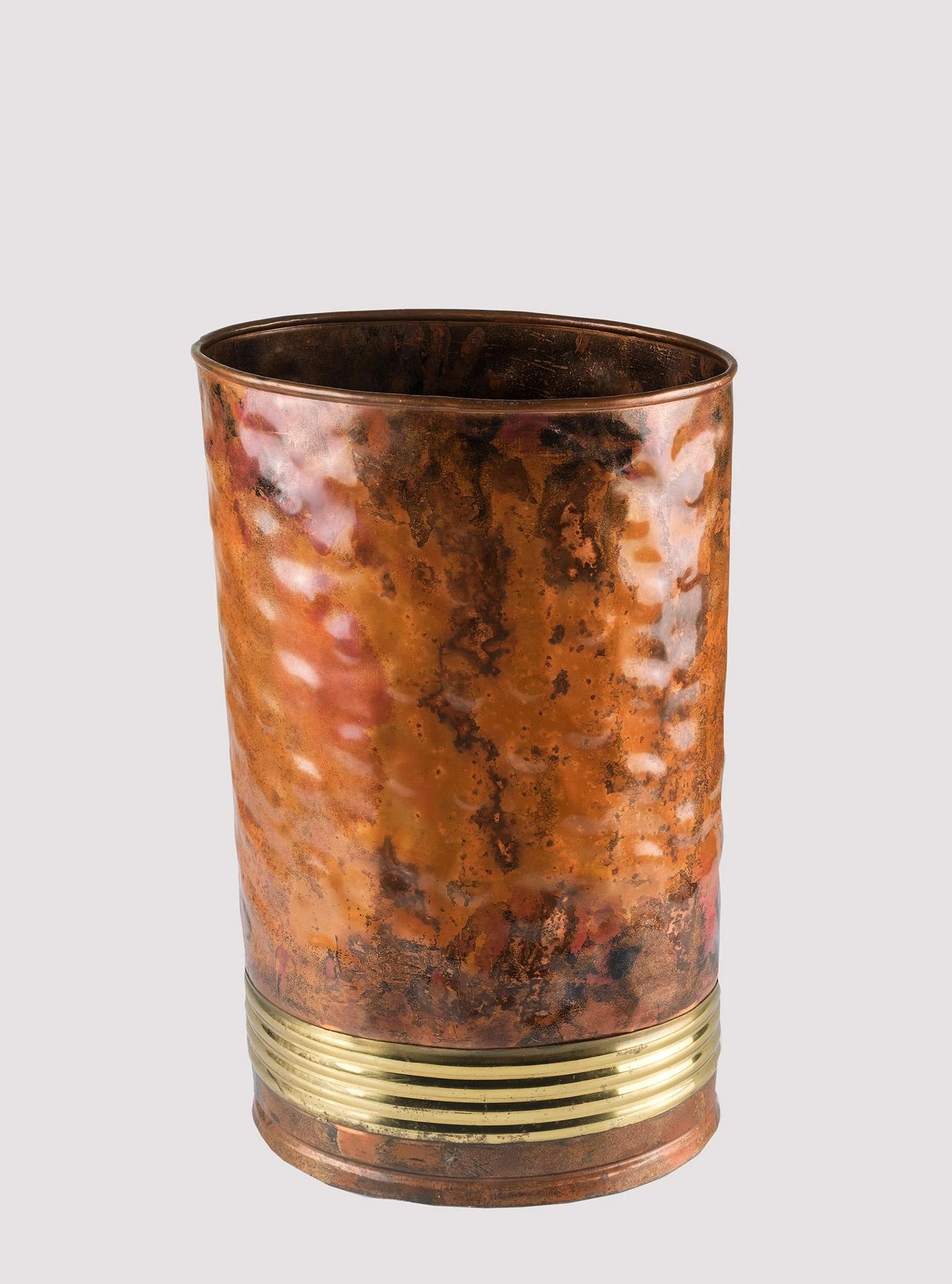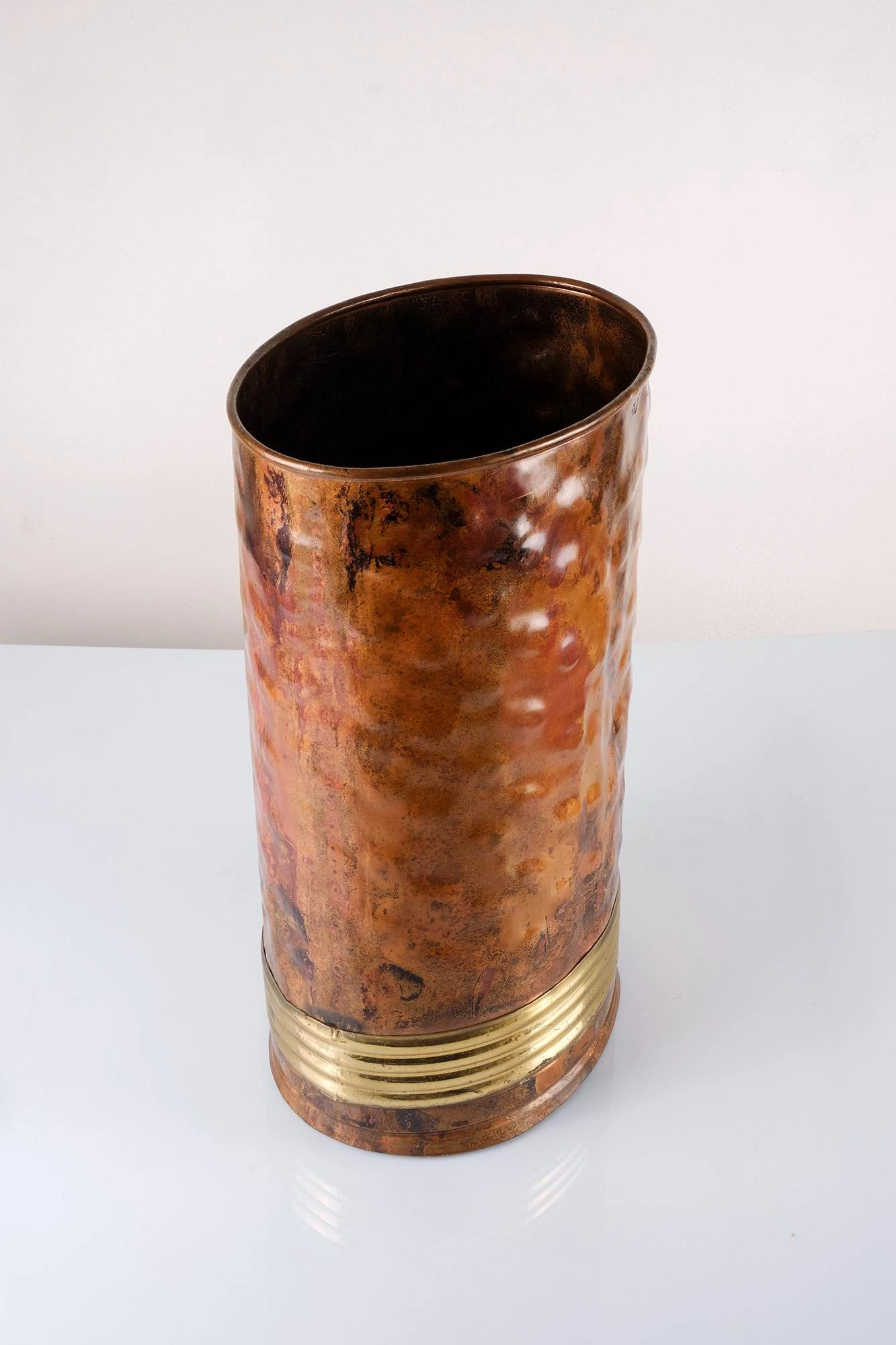 Hand hammered copper and brass umbrella/walking stick stand. It has a beautiful patina. Manufactured by Ar.Ven, Italy (original label underneath).