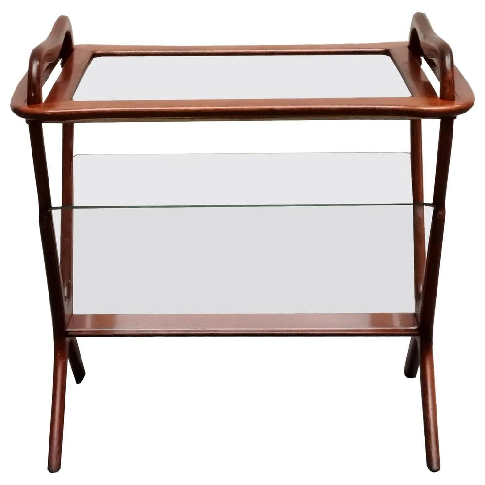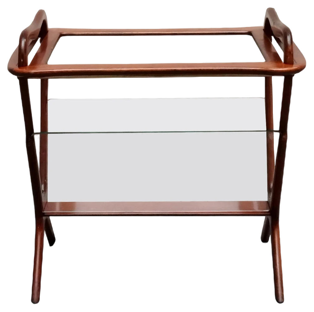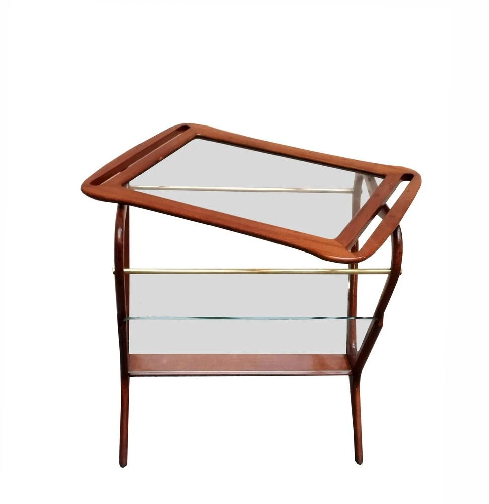 Beautiful coffee table / magazine rack made of solid birch wood, glass and brass details. The top is a removable tray. Manufactured by De Baggis in 1956. This piece is attributed to the mentioned designer/maker. It has no attribution mark and no