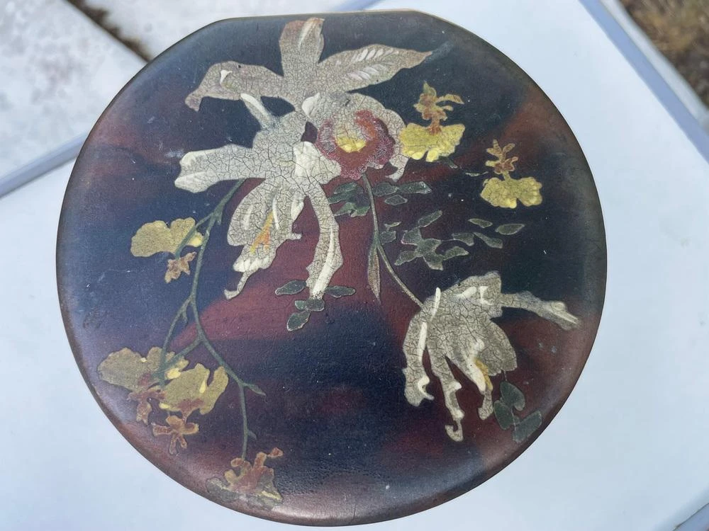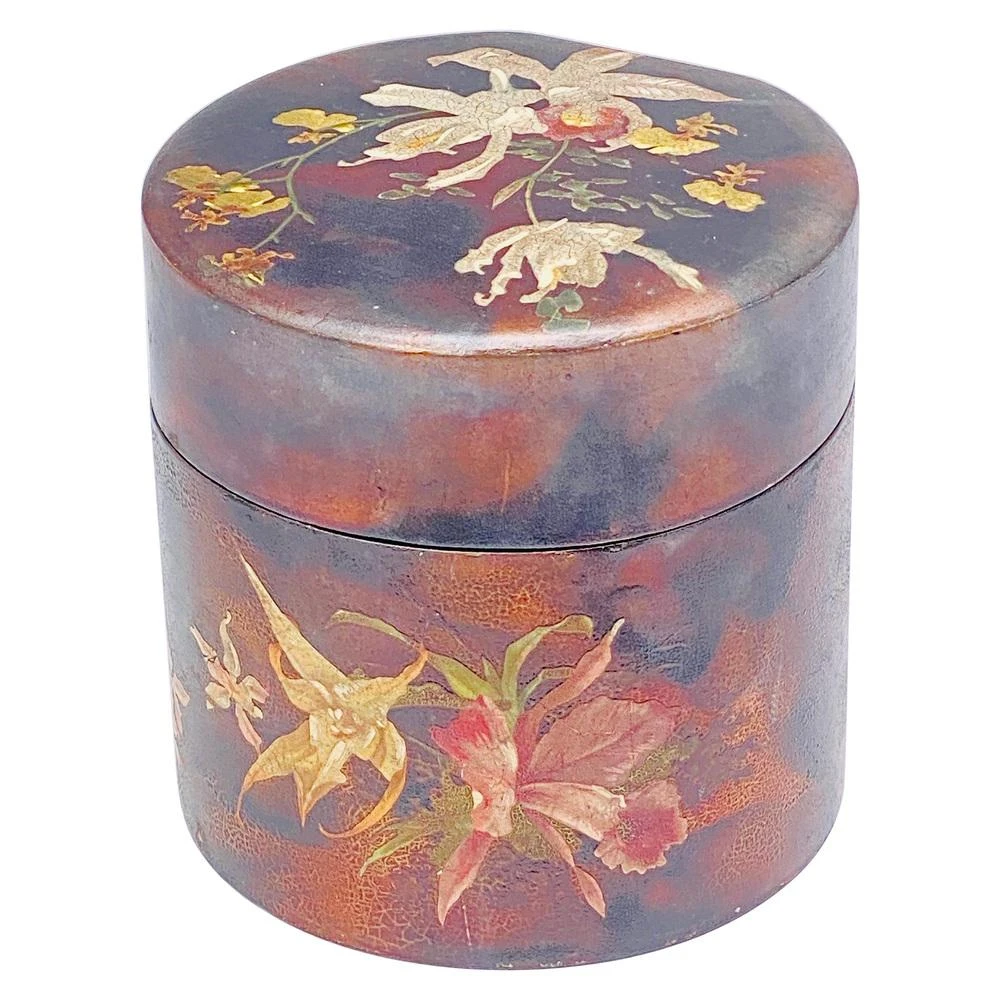 This is a very beautiful Japanese box dating from the beginning of the 20th century. It is lacquered in brown color, with flower patterns. It was made in Japan.