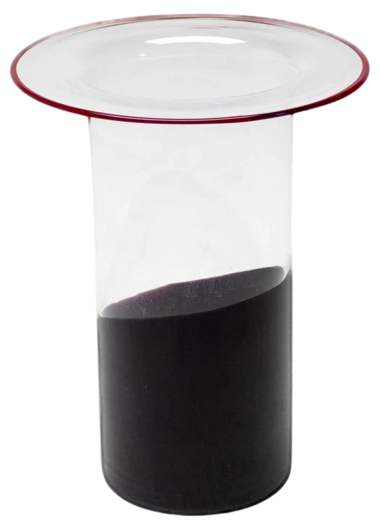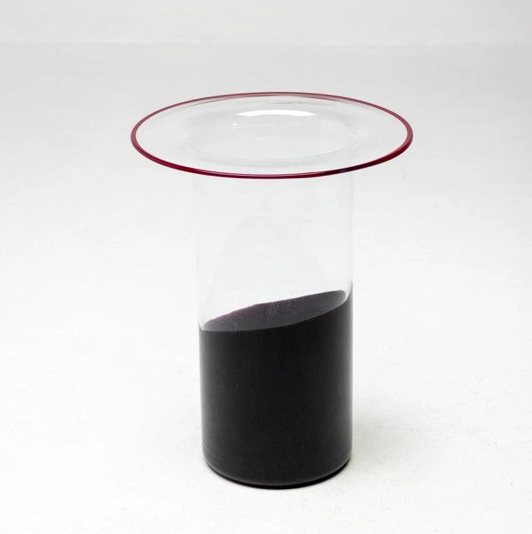 Beautiful Vistosi cylinder hat shaped vase in clear glass with partial black glass at the bottom and a red glass …