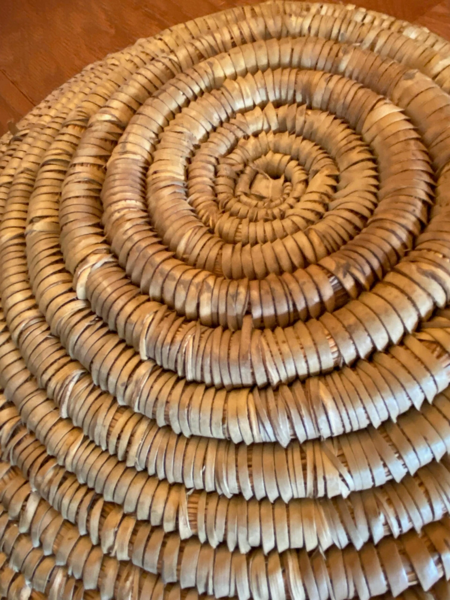 Even in museums the terms “Pima basketry” and “Papago basketry” are used interchangeably; however, there are some notable differences. The art of basketry is comprised of cultural choices and determined by historical processes that are unknown to us. Due to certain environmental conditions, the Papago and Pima did not have access to the same materials needed for their weaving. The Papago were surrounded by harsh, dry vegetation with an abundance of martynia. On the other hand, the Pima were surrounded by willow and cottonwood; therefore, most often a Papago Indian basket would be woven with dark martynia and a willow design. The Pima Indian basket would be woven in willow with a dark martynia pattern.