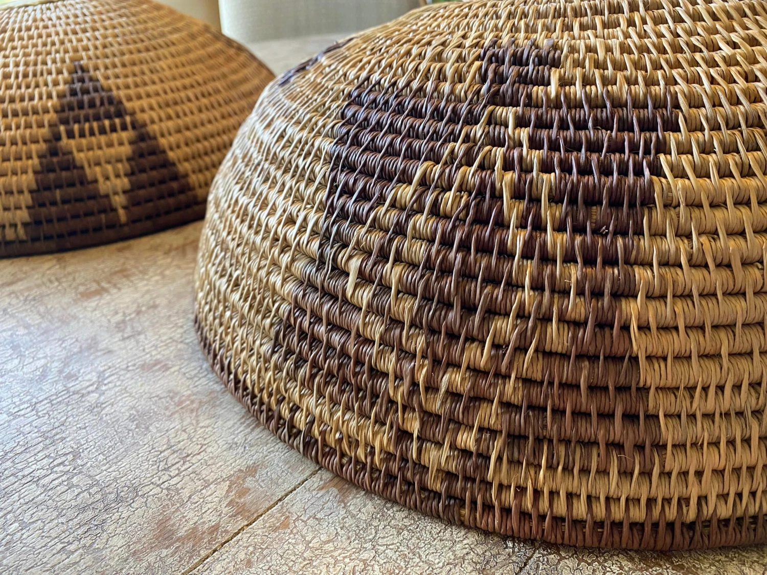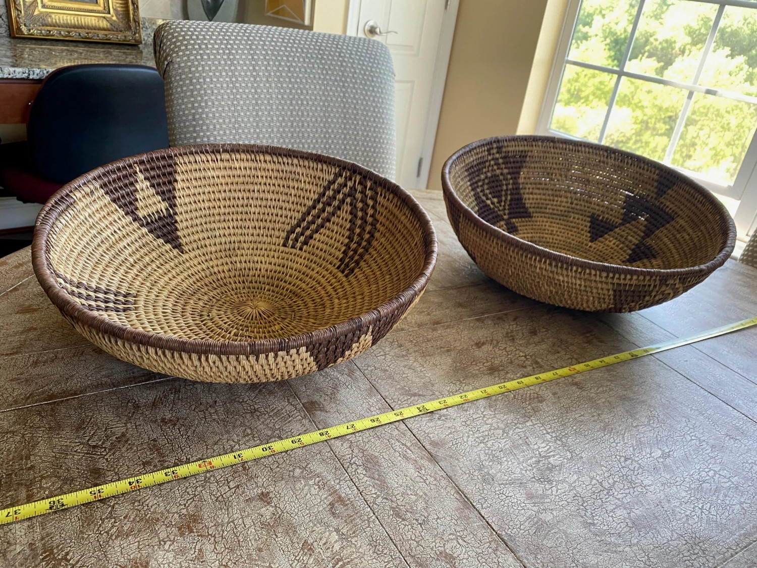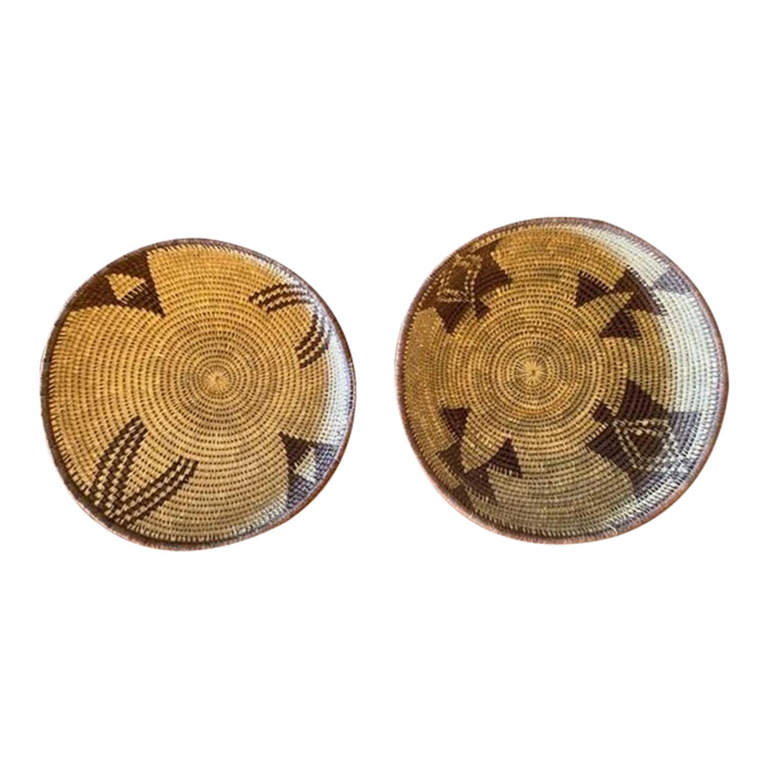 Set of 2 HUGE Vintage handwoven Papago/Tohono O’Odham Bowl Baskets have geometric designs and especially high quality well-made collectibles with …