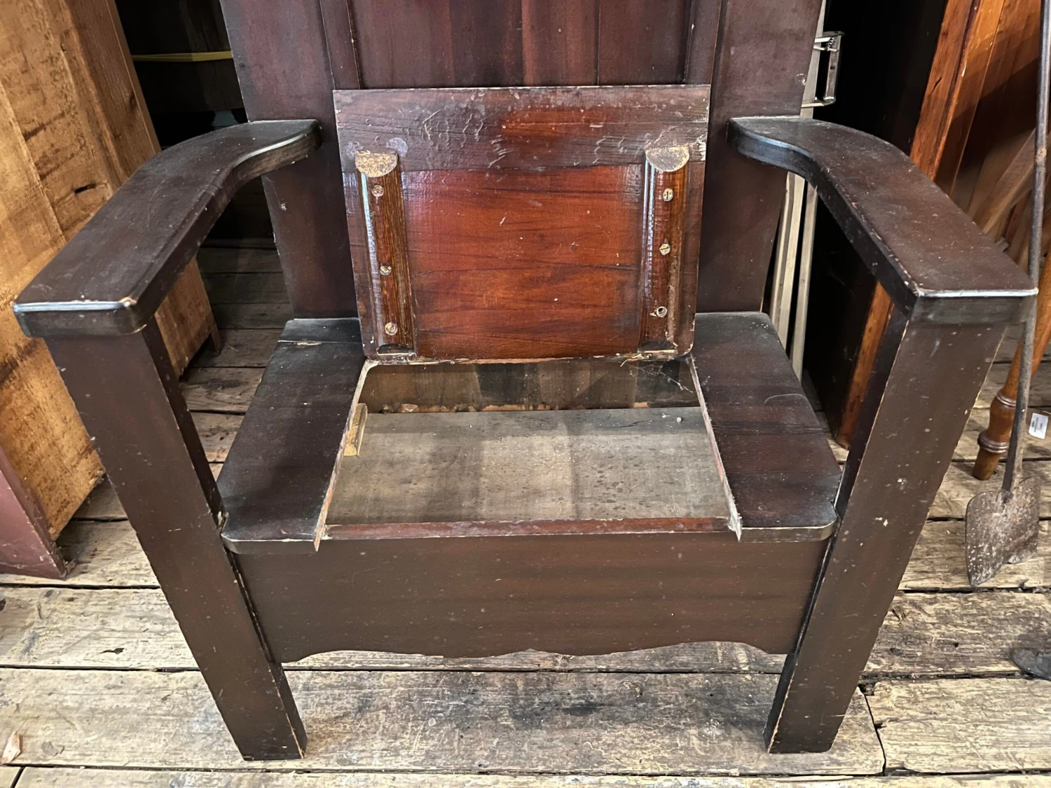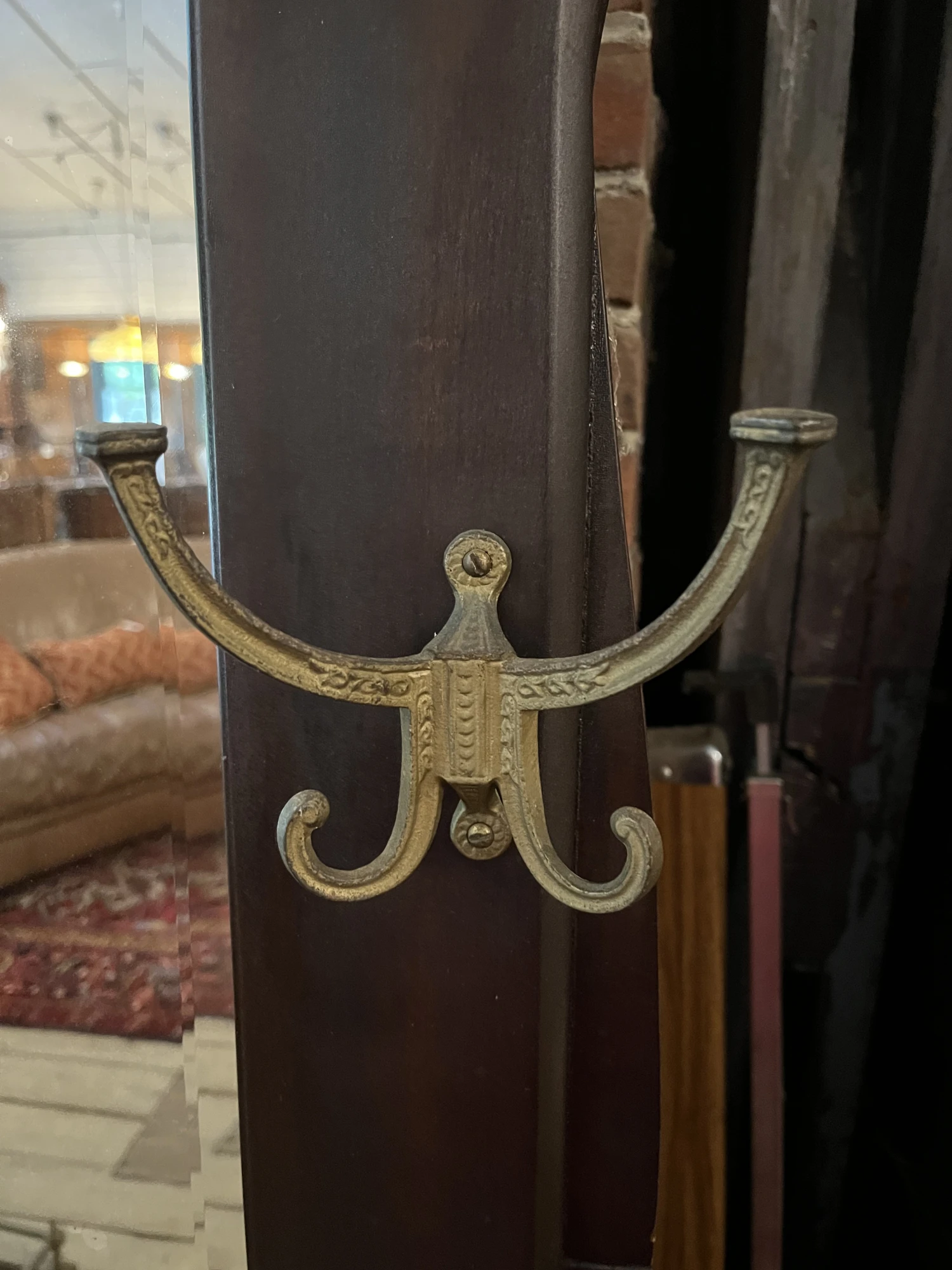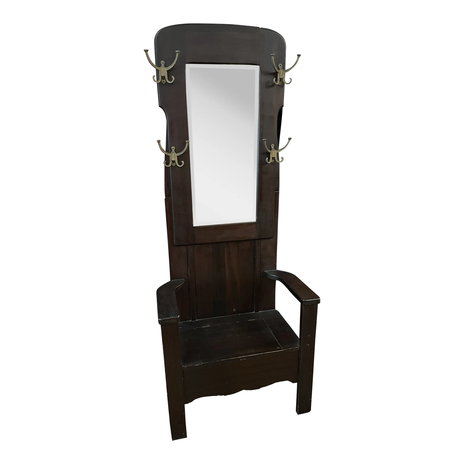 Antique Mahogany Hall Tree with Beveled Mirror and Storage Seat. Dimensions: W: 29.5″ x D: 16″ x H: 73.5″, Seat …