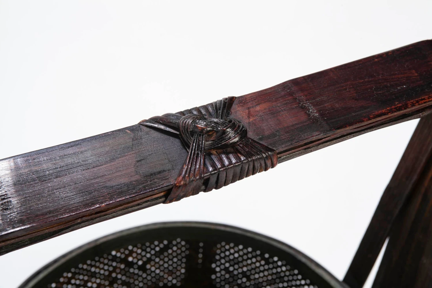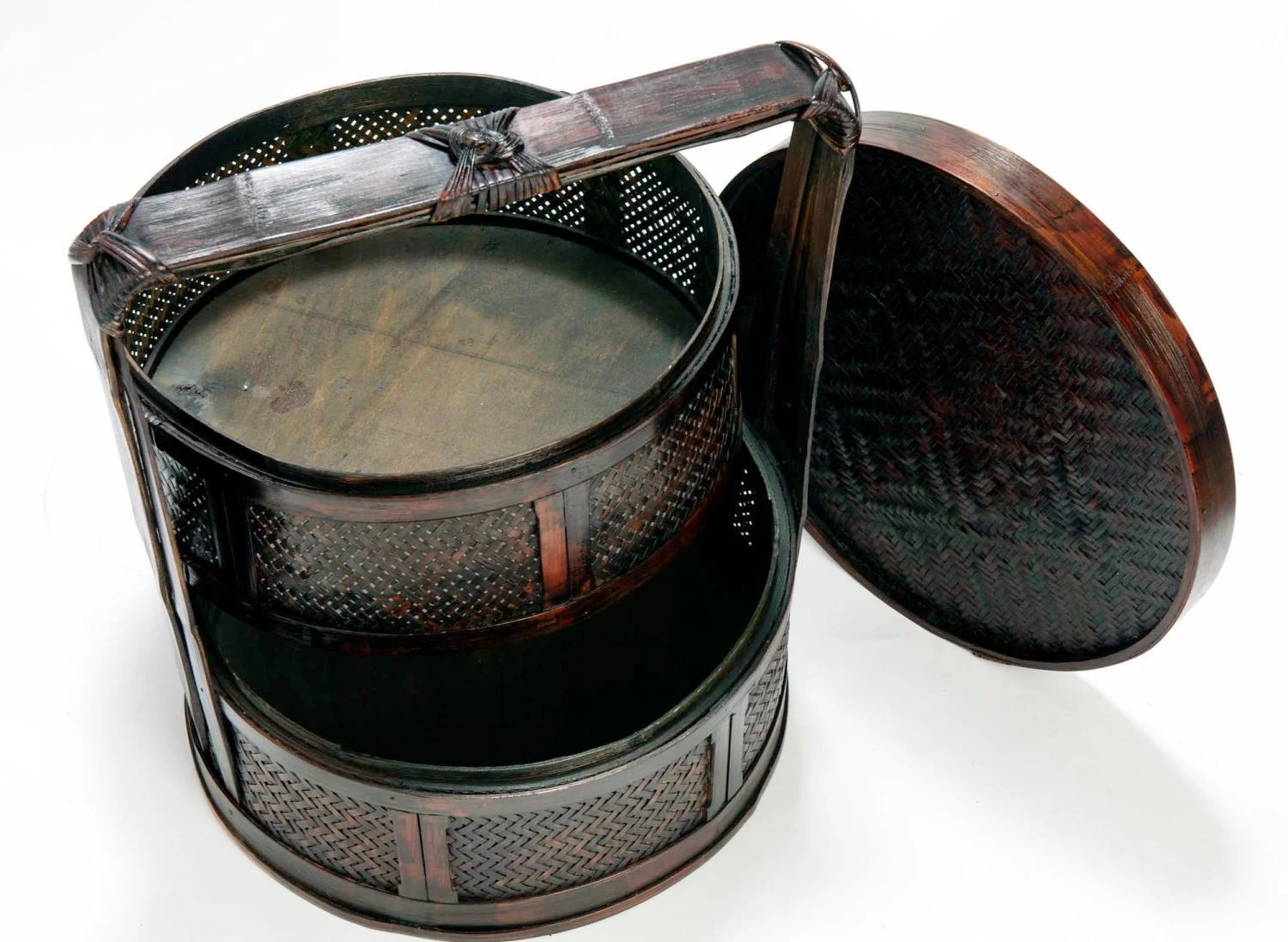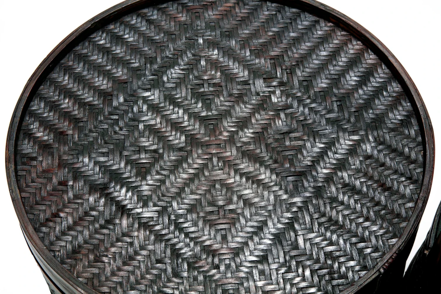Born in early 20th century China, this basket features a circular lid adorned with a beautiful woven pattern.