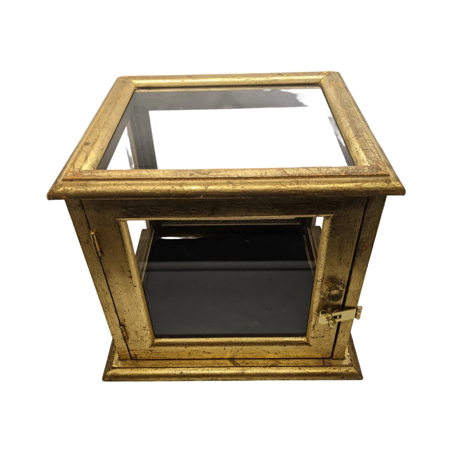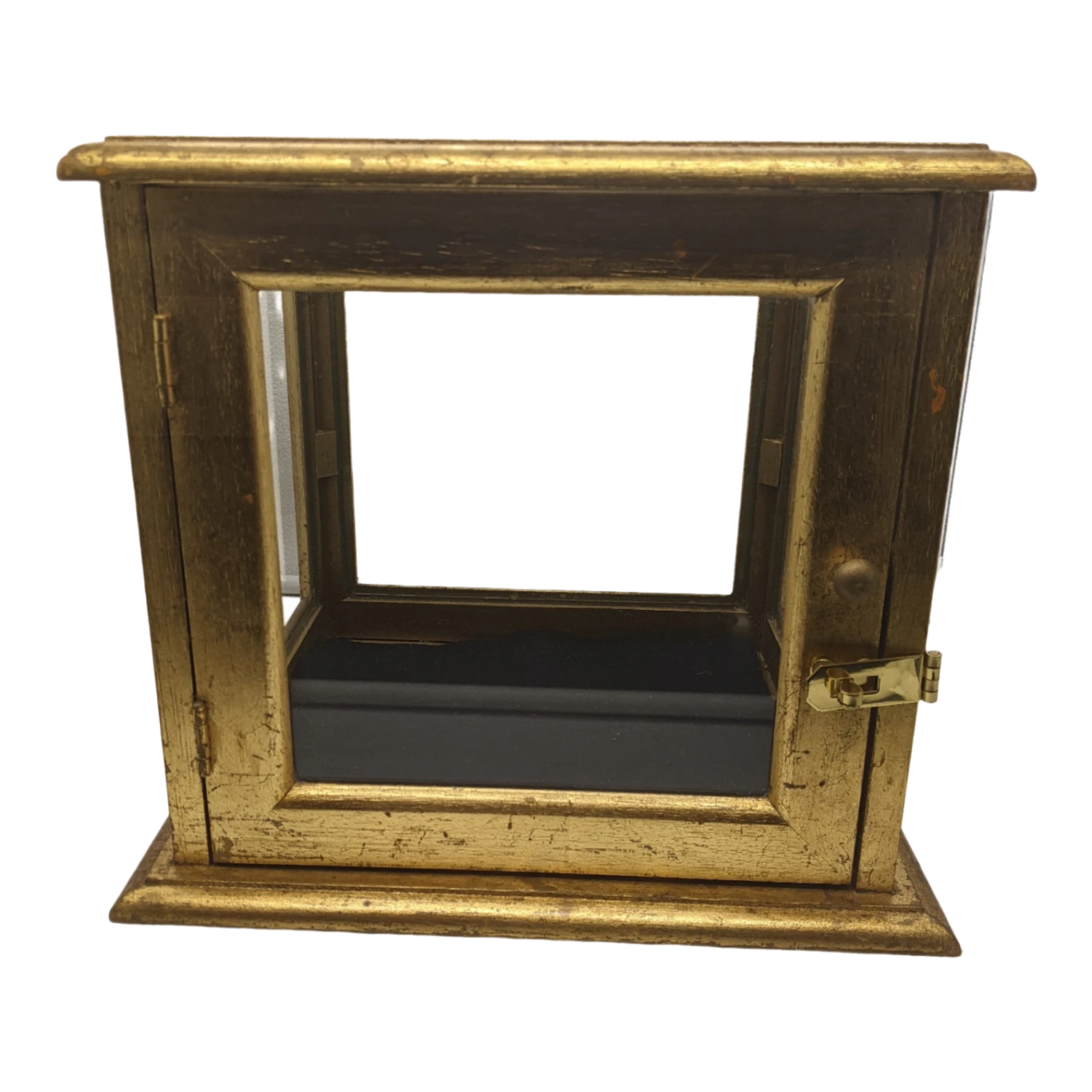 Countertop Display Box Cube Painted Gold Shabby Chic Wooden Glass Lock Padlock Lockable