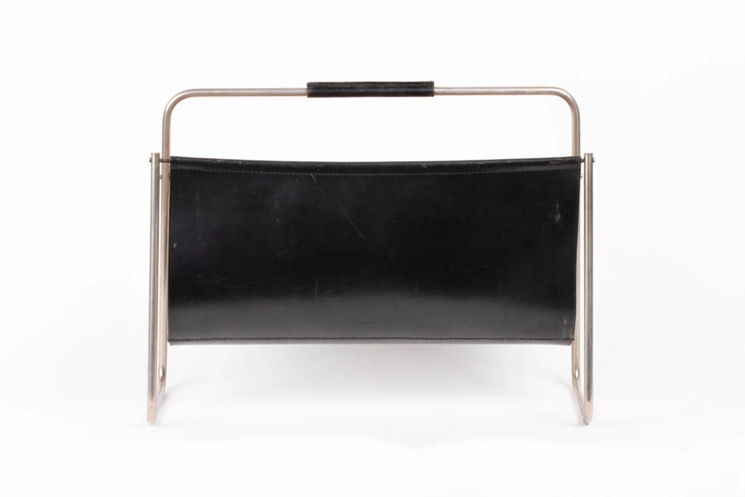 Carl Auböck magazine rack from Austria from the 1960s. This piece is attributed to the mentioned designer/maker. It has no attribution mark and no