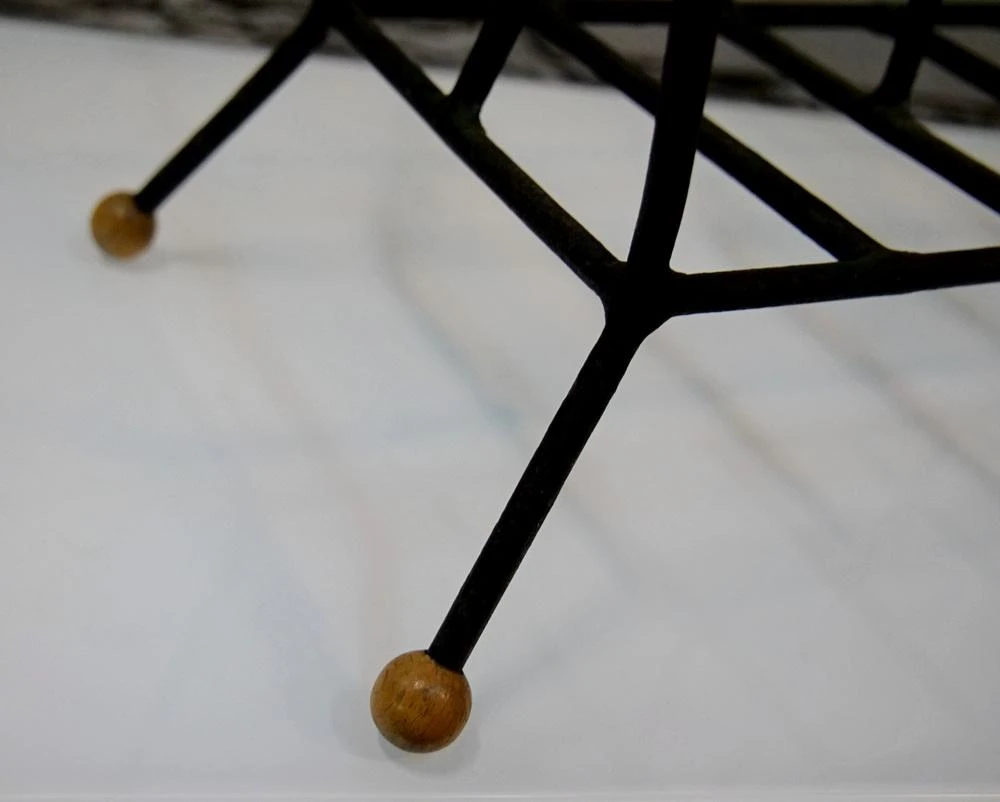 Magazine rack designed by Tony Paul, United States, 1950s, a unique rack for newspapers and warehouses, all -steel in black, skis finished with original wood balls, furniture quite heavy and stable.
