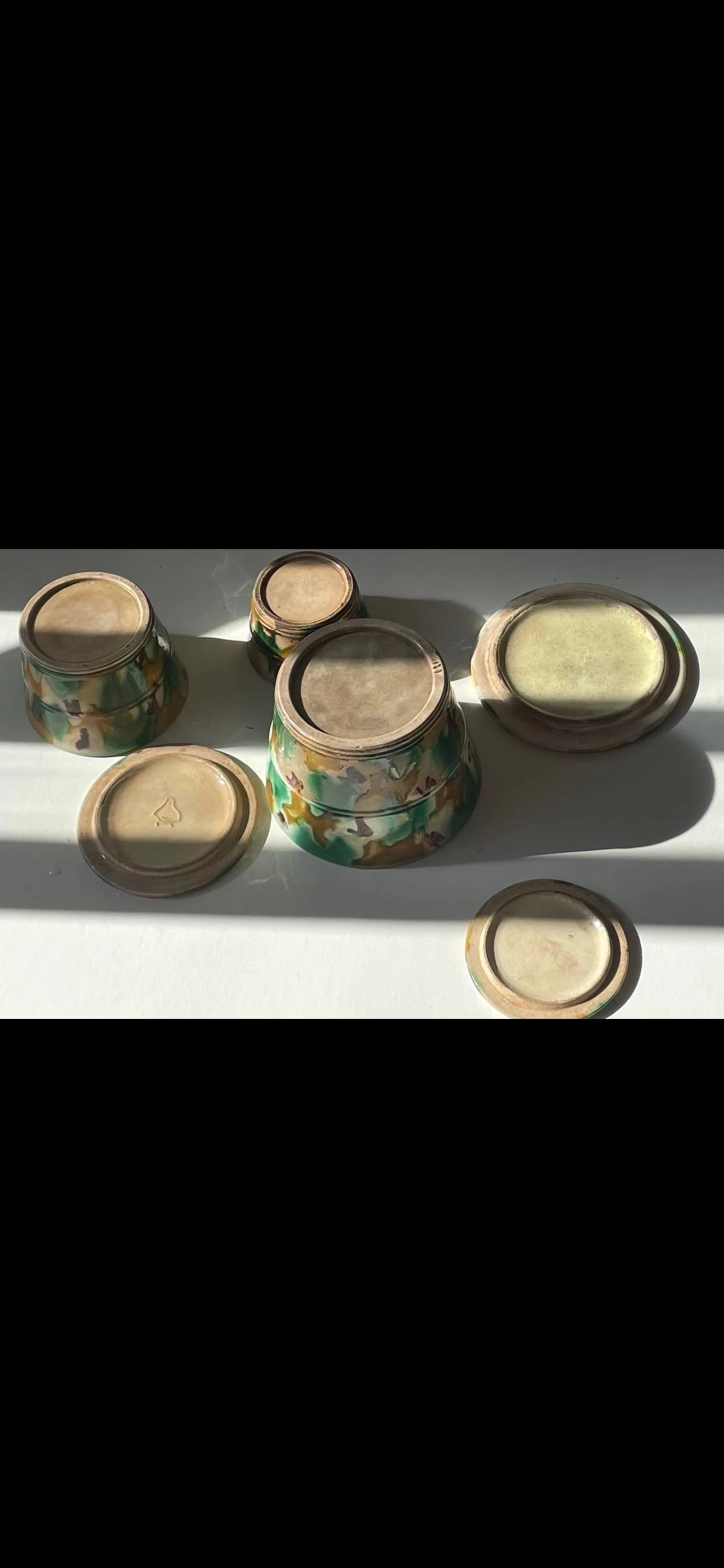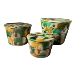 Mid- 19th Century set of three stoneware nesting pots in sanci glaze from the island of Awaji, Japan. Museum quality …